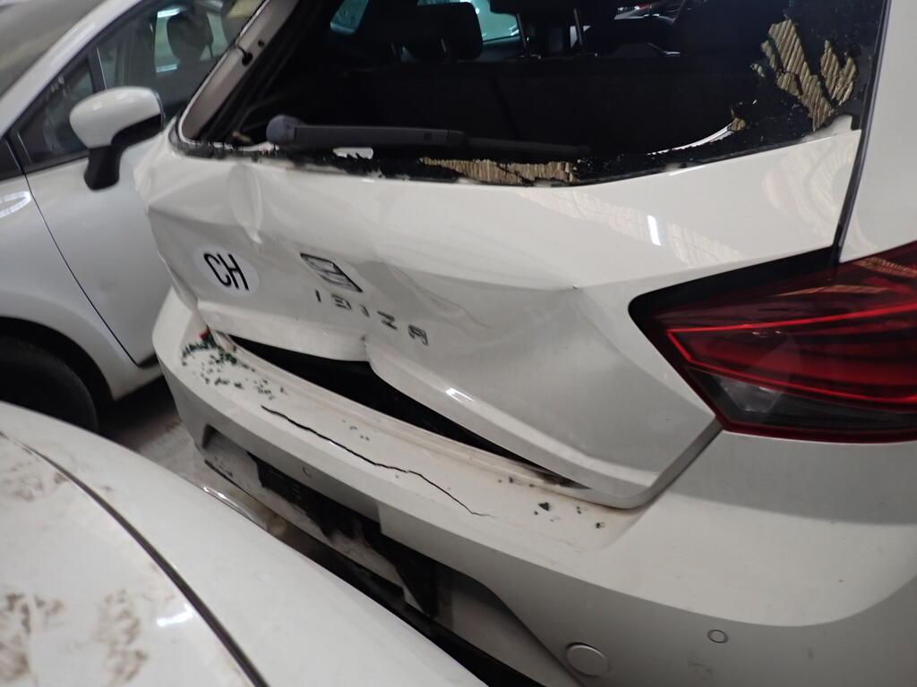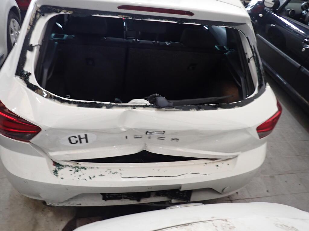 Choc frontal et central arrière Avant du véhicule et arrière entièrement endommagés. Moteur démarre mais ne tourne pas avec tous les cylindres et fonctionne, mais ralenti instable. Côté gauche, droit, partie avant, tous les radiateurs, tableau de bord endommagés. Choc sur le montant "A" gauche. Choc sur le montant "A "droit. Arrière enfoncé. Capot moteur, tôle frontale, arrière, fond de coffre, hayon enfoncés. Ailes arrières gauche enfoncées et refoulées. Passage de roue avant droite et gauche enfoncés. Longeron avant droit et gauche refoulés. Longeron arrière gauche et droit pliés et refoulés. Echappement plié. Risques sur le moteur, la boite de vitesses, l'essieu avant, l'essieu arrière, la direction et le différentiel. Le véhicule ne peut pas rouler et ne peut pas être remorqué. Ceintures de sécurité déclenchées. Garniture de pavillon déchirée. Divers éléments de carrosserie sont légèrement endommagés. Risques sur les boîtiers de command et les torches électriques.
