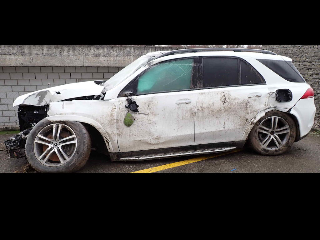 Linke Seite inkl. Dachrahmen, Frontscheibe, Dach, Front, Aufhängung vorne/hinten und Airbags beschädigt Motor Getriebe Vorderachse Hinterachse Airbags ausgelöst: 2 unbekannt ( Abfallcode 16.01.04ak )