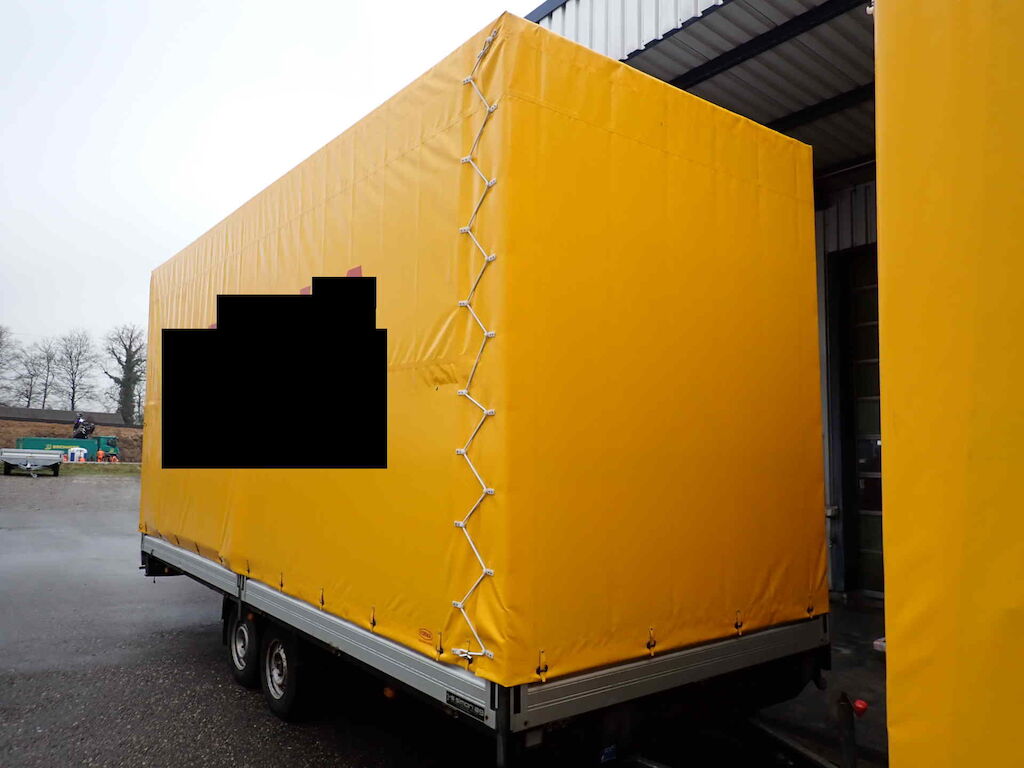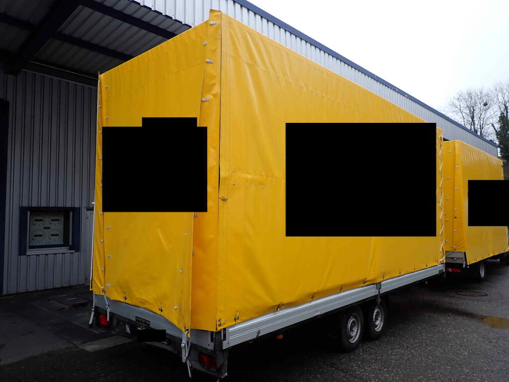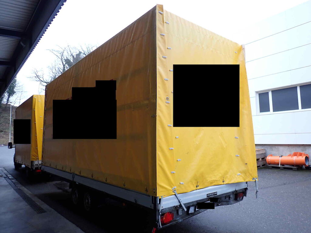 Auffahrunfall - der Anhänger war zum Unfallzeitpunkt am Zugfahrzeug befestigt.Dieser Anhänger wurde vom Hersteller Humbaur auf eine Spezialbreite und Höhe gebaut.Plache ist in einem guten Zustand - Das Firmenlogo muss entfernt werden!
