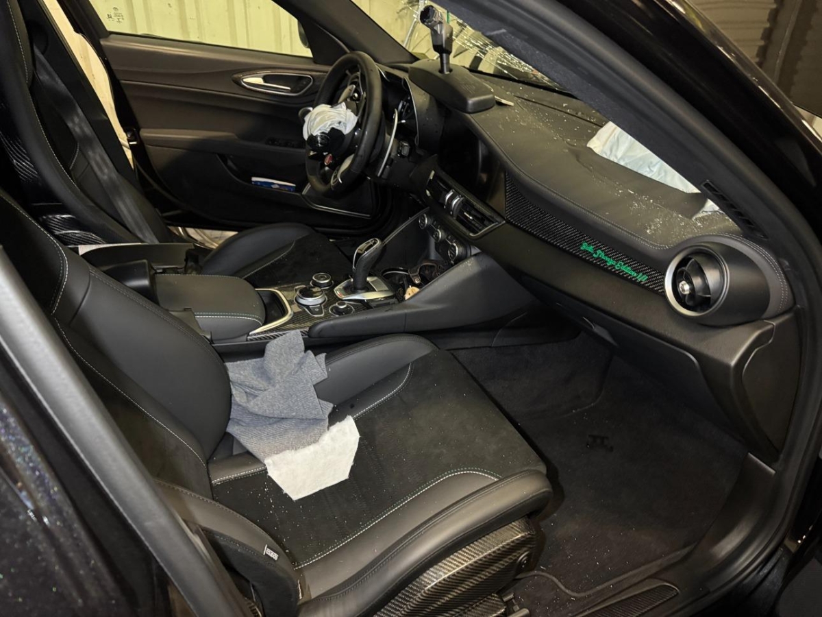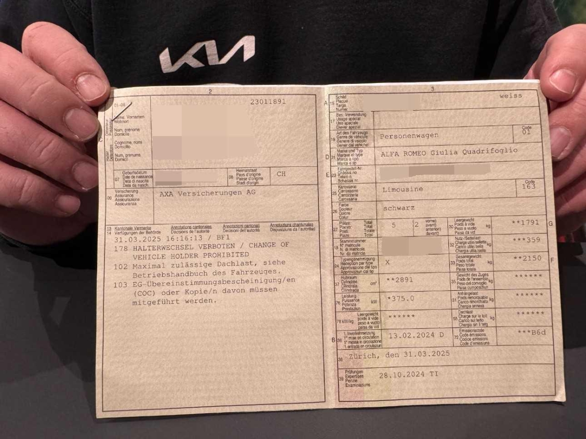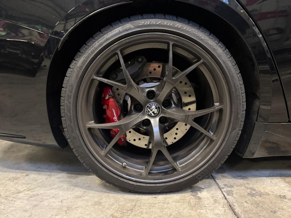 Auspuffendrohre Doppelte Quadrifoglio, 3-Punkt-Sicherheitsgurte auf allen Plätzen, Start/Stop-Funktion, Aussenspiegelkappen in Wagenfarbe, Media: Alfa Connect Services, Schalthebel Quadrifoglio, Elektronisches Stabilitäts-Programm (ESP), Garantie: 8 Jahre Antikorrosions-Garantie, Body-Kit in Aussenfarbe, Scheibenwaschdüsen beheizt, Airbag: Seitenairbag für Fahrer und Beifahrer, Alfa Romeo Fussmatten vorne/hinten, Sitze: Beifahrersitz 6-fach elektrisch verstellbar und 4-facher elektrischer Einstellung der Lordosenstutze, Dekor: Carbon Applikationen im Innenraum, Licht: LED Innenbeleuchtung, Licht: Drittes Bremslicht, Heckstossfänger Quadrifoglio-spezifischer, Getriebe: 8-Stufen-Automat sequentiell, Sitze: Fahrersitz 6-fach elektrisch verstellbar mit Memory Funktion und 4-facher elektrischer Einstellung der Lordosenstütze, Hintere Belüftungsdüsen, Hacken im Kofferraum, Lackierung: Uni-Lackierung, Armaturenbrett aus Leder, Assist: Aufmerksamkeitsassistent, Innenrückspiegel automatisch abblendbar, Katalysator geregelt mit Otto-Partikelfilter, Media: Radio Dab+, Licht: Scheinwerferwaschanlage, Keyless Entry / -Start, Assist: Intelligente Geschwindigkeitsregelung mit Fahrbahnbegrenzungserkennung, Media: Apple Carplay & Android Auto, Licht: Nebelschlussleuchte, Polster: Sport-Ledersitze, Assist: Aktiver Totwinkel-Assistent, Antiblockiersystem (ABS), Dachhimmel schwarz, Garantie: 3 Jahre Lackgarantie 3 Jahre/100000km, Media: 8,8" Farbiges Multitouch-Display mit Navigationssystem, Media: Smartphone-Fach mit kabelloser Aufladung, Assist: Passiver Spurhalteassistent, Licht: Schwarze Rückleuchten, Beleuchtete Türgriffe, Fahrwerk: Alfa Active Suspension Fahrwerk mit elektronischer Stossdämpferregelung, Sitze: Vordersitze heizbar, Airbag: Airbag Beifahrer deaktivierbar, Fahrwerk: Antriebswelle aus Kohlefaser, Media: USB-Buchse und AUX-Eingang in der Mittelarmlehne, Fahrwerk: Alfa Romeo D.N.A - Fahrdynamikregelung mit RACE-Mode, Lenkrad: Quadrifoglio-Leder- Und Alcantara-Lenkrad Mit Carboneinsatz, Getönte Sichtschutzfenster hinten, Assist: Autonome Notbremsung (AEB), 12 Volt-Steckdose, Rückhaltesystem im Gepäckraum, Media: Harman Kardon Soundsystem 15 Lautsprechern, Assist: Parksensoren vorne und hinten, Alfa Romeo LED Signaturlicht, Garantie: 5 Jahre Swiss Free Service oder 100'000 km, Carbon Seitenchweller, Fahrwerk: Alfa Active Torque Vectoring (Sperrdifferenzial), Räder: 19"-Leichtmetallfelgen TROFEO DARK mit Mischbereifung 245/35 vorne und 285/30 hinten, Licht: Dynamische adaptive Voll-LED-Matrix-Scheinwerfer, Türgriffe in Wagenfarbe, Klima: 2-Zonen-Klimaautomatik, Heckspoiler in Carbon, Wegfahrsperre elektronisch, Media: 2 USB-Anschlüsse hinten (Typ A/C), Sitze: Umklappbare Rücksitzbank im Verhältnis 40 / 20 / 40, Licht: Automatisches Scheinwerferlicht mit Dämmerungssensor, Aluminium-Sportpedale, Aussenspiegel elektrisch anklappbar, Licht: Fernlichtassistent, Dekor: Schwarzglänzende Fensterrahmen, Assist: Traffic Jam Assist, Media: Combiinstrument Cannocchiale 12,3-Zoll-Digitaleanzeige, Bordcomputer, Räder: Reifenreparaturset (Kit Fix&Go), Media: USB-Buchse mit Ladefunktion, Drehzahlmesser, V-Grill "Scudetto" in Anthrazit, Assist: Auffahrwarnsystem, Assist: Adaptiver Tempomat mit Geschwindigkeitsbegrenzer, Brembo-Bremssättel, rot lackiert, Dekor: Logo Quadrifoglio, Elektrische Servolenkung mit Dynamic Steering Torque, Lenkrad: Schaltwippen aus Aluminium, Fahrwerk: Brembo Hochleistungs Bremsanlage, Assist: Highway Assist System (HAS) Autobahn Assistent, Assist: Rückfahrkamera mit dynamischen Führungslinien, Assist: Intelligente Verkehrszeichenerkennung, Räder: Reifendruckkontrollsystem, Sitze: Kopfstützen vorne höhenverstellbar, Fahrwerk: Alfa Active Aero Splitter, Airbag: Airbag Fahrer und Beifahrer, Sicherungsringe im Kofferaum, Sonnenblende Fahrer und Beifahrerseite mit beleuchtetem Spiegel, Lenkrad: Lenkrad beheizbar, Garantie: 5 Jahre / 200 000 km Vollgarantie Alfa Romeo auf Teile und Arbeit, Air Quality System (AQS), Regensensor, Zentralverriegelung, Licht: LED-Tagfahrlicht, Heckscheibenheizung