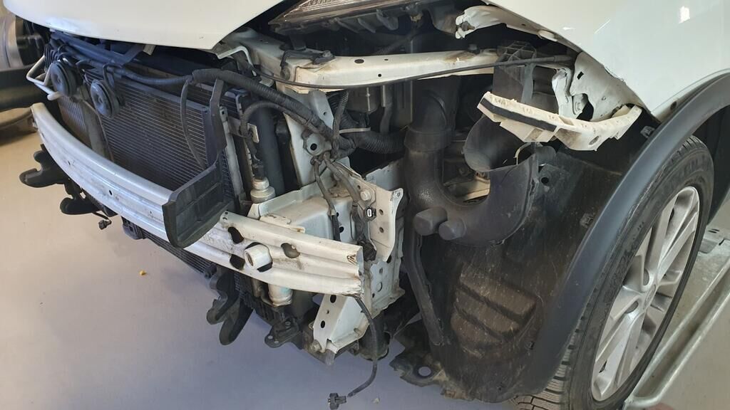 Bloc avant décalé sur la droite, pare-chocs avant, renfort, aile avant gauche, longerons endommagés Motor Getriebe Vorderachse Hinterachse Airbags ausgelöst: 0 unbekannt ( Abfallcode 16.01.04ak )