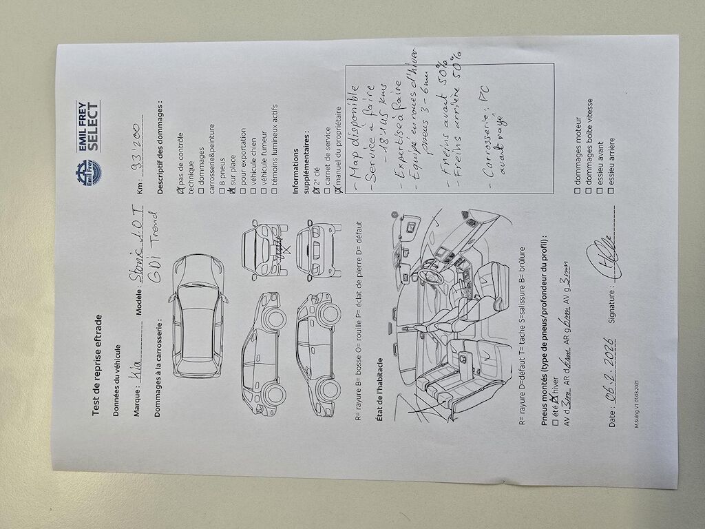 2 clésMap disponibleService à faire -18145 kmsExpertise à faireEquipé en roues d'hiver pneus 3 et 6 mmFreins avant 50 %Freins arrière 50 %Carrosserie : Pare-chocs avant rayéPas de contrôle technique (essai en route) effectué