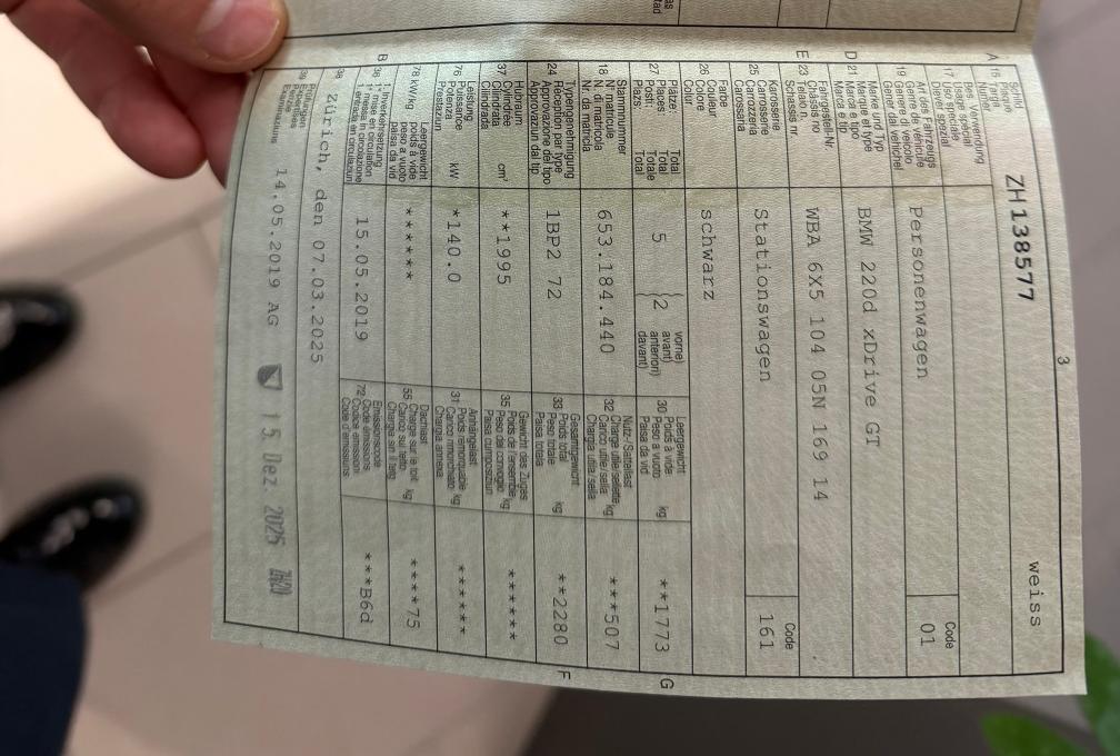 Verkauf ausschliesslich ab Platz, Jede Gewährleistung, soweit nach Gesetz möglich, wird wegbedungen, insbesondere sind Wandelung und Minderung ausgeschlossen. Der technische Zustand ist unbekannt, das Fahrzeug wurde nicht geprüft. Zustand wie auf den Bildern, kann jedoch bei der Abholung abweichen. (z. B. Mängel, die uns nicht bekannt sind.) Sämtliche Mängel sind Sache des Käufers. Keine Rücknahme, keine Nachverhandlung, kein Preisnachlass. Kauf erfolgt wie gesehen. Laut Kunde (ohne Gewähr): Fahrzeug hat noch Gratisservice, MFK 12.2025.