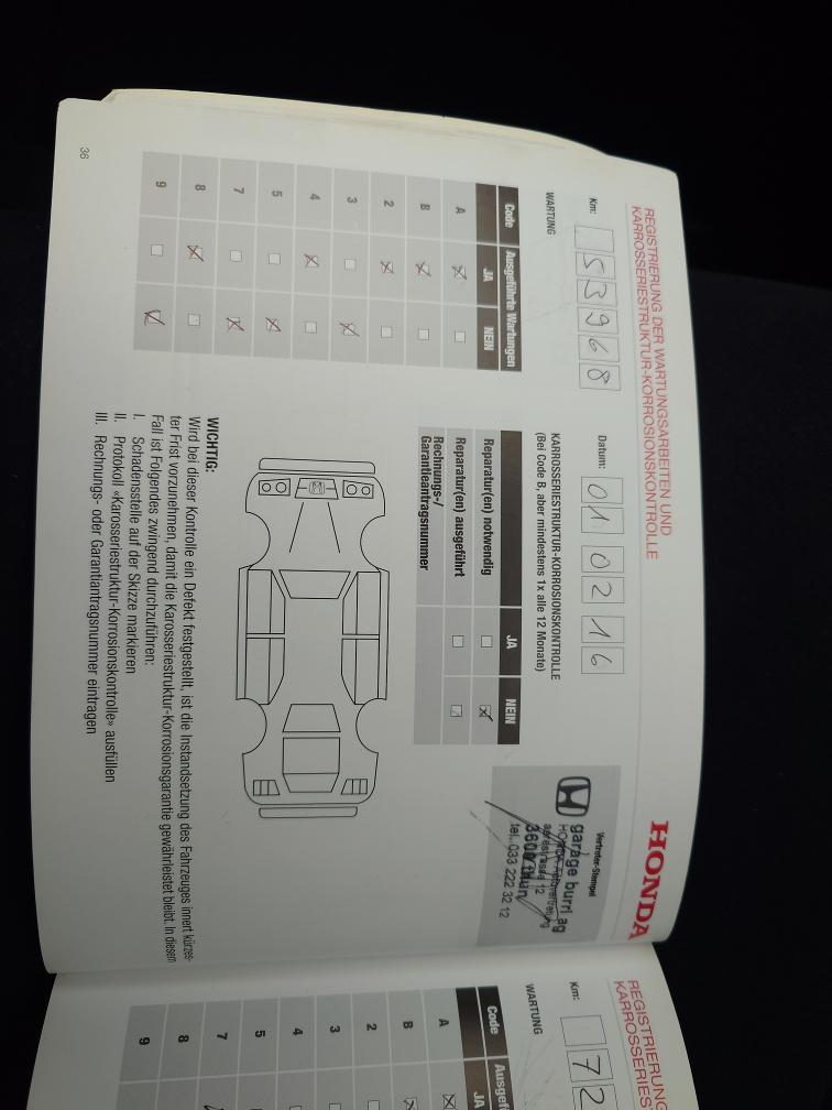 Gepflegtes 1. Hand Auto. Kein Werkstatt Test durchgeführt da erst vor 1300 Km Service durchgeführt wurde. Auto ab Platz. Keine Haftung für Mängel. Das Auto wurde nach bestem Wissen und Gewissen ausgeschrieben. Keine Nachverhandlungen. Bei Zuschlag muss das Auto innert 3 Arbeitstagen abgeholt werden, sonst wird pro Tag 30.- verrechnet!