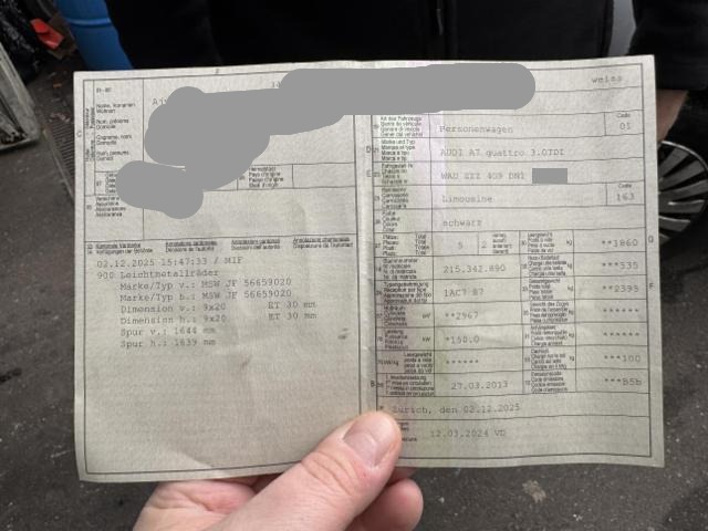 Fahrzeug muss transportiert werden (Höhe und Breite beachten). Fahrzeug ist rollbar.