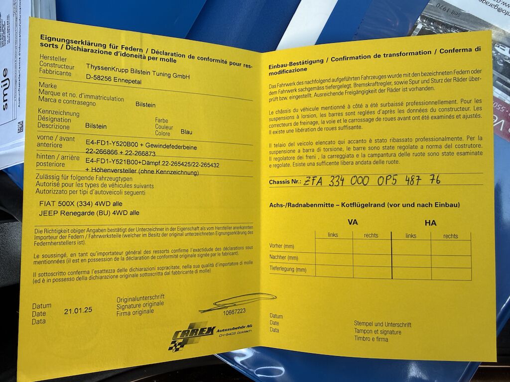 Besitzt eine eingetragene Tieferlegung. (Siehe Fotos)