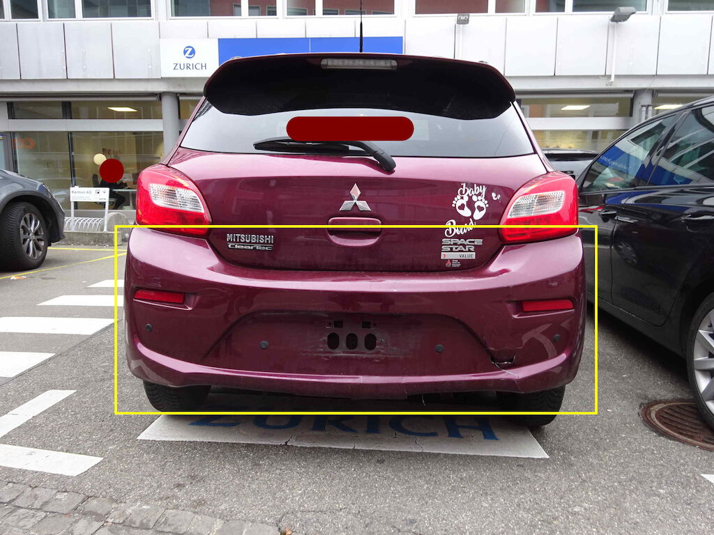 Stossfänger hinten gerissen, Heckblech fest deformiert, Heckklappe Kratzer Motor Getriebe Vorderachse Hinterachse Airbags ausgelöst: 0 unbekannt ( Abfallcode 16.01.04ak )