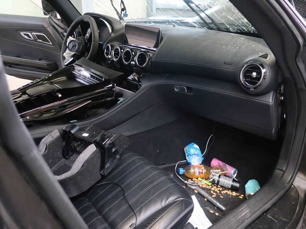 Beschädigungen: Komplette Front, Kotflügel vorne links und rechts, Felge vorne und hinten rechts, Radhaus bis A-Säule vorne rechts, Spritzwand rechts, A-Säule/Dachrahmen rechts, Frontscheibe, Glassplitter auf Armaturenbrett, Seitewand hinten rechts, Türe rechts und links zu Seitenwände verschoben, Fahrerairbag und Knieairbag Fahrer ausgelöst, Gurtstraffer Fahrer ausgelöst, Motor rechts ziemlich stark nach hinten verschoben, Risiko Motor und Getriebe Zusätzlich: Steuergerät ABS wurde ausgebaut und wird voraussichtlich nicht mitgeliefert. Keine Reparaturkalkulation erstellt da klarer und offensichtlicher Totalschaden vorliegt. Motor Getriebe Vorderachse Hinterachse Airbags ausgelöst: 2 unbekannt ( Abfallcode 16.01.04ak )