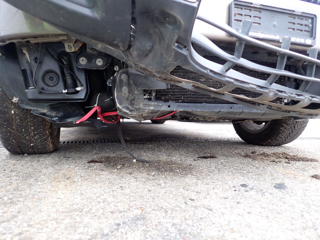 Choc avant sous le véhicule, radiateurs refoulés. Motor Getriebe Vorderachse Hinterachse Airbags ausgelöst: 0 Ja ( Abfallcode 16.01.04ak )