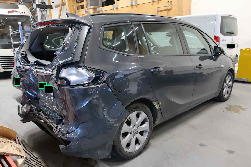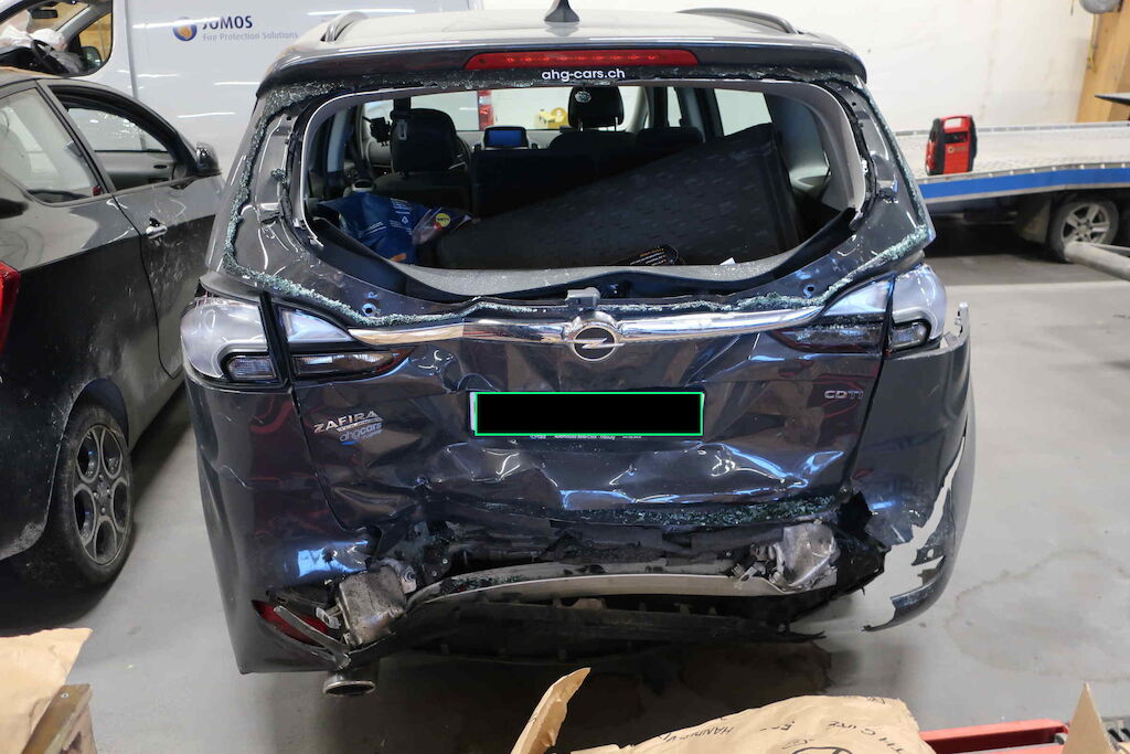 Stossfänger hi, Spoiler, Querträger, Heckdeckel, Heckblech, Kofferboden, Adbluetank beschädigt Seitenwand hi li und re deformiert und nach vorne geschoben Gurtstraffer ausgelöst Motor Getriebe Vorderachse Hinterachse Airbags ausgelöst: 0 unbekannt ( Abfallcode 16.01.04ak )