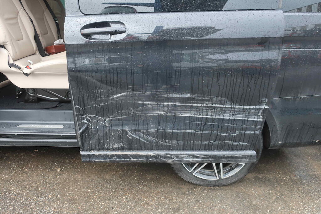 Dommage porte AVD, pare-chocs AV, phare AVG, aile AVG, roue et suspension VAG, montant AVG, porte AVG, porte coulissante G, airbags G x2, aile ARG, pare-chocs AR (liste non-exhaustive) Motor Getriebe Vorderachse Hinterachse Airbags ausgelöst: 0 unbekannt ( Abfallcode 16.01.04ak )