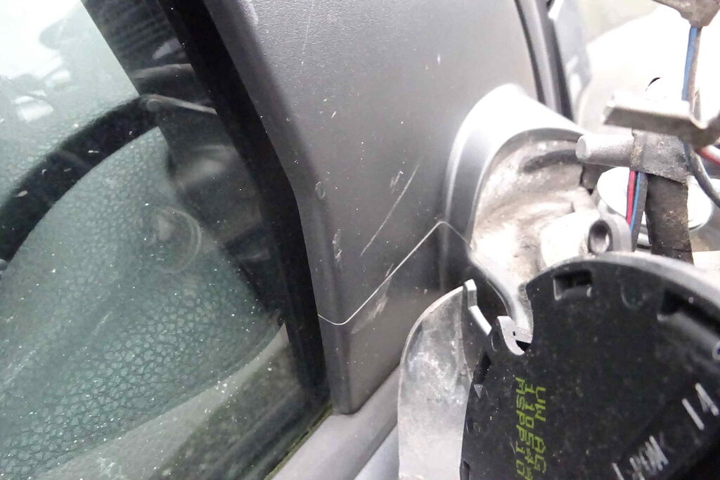 Seitenspiegel, Türe, Fensterscheibe und Seitenwand beschädigt Motor Getriebe Vorderachse Hinterachse Airbags ausgelöst: 0 unbekannt ( Abfallcode 16.01.04ak )