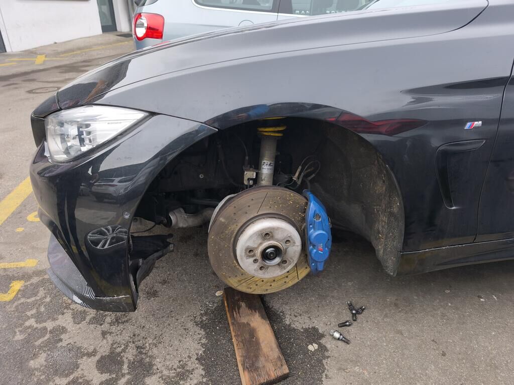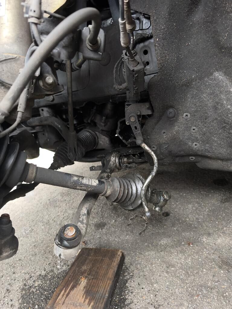 Durch den Anprall im Bereich vorne links sind beschädigt, das komplette Fahrwerk inkl. Lenkung vorne links, die Antriebswelle vorne links, ev. das Verteilergetriebe vorne, die Radhausschale vorne links, diverse Abdeckungen, Luftführungen, Leitungen usw. vorne links. Zudem ist die SRA-Anlage vorne links und die Stossstange vorne inkl. Nieren usw. beschädigt. Am Unterboden sind beschädigt die abdeckung und das vordere Flexrohr. Das Fahrzeug ist nicht fahrbar und muss abgeschleppt werden (auf Rollen). Motor Getriebe Vorderachse Hinterachse Airbags ausgelöst: 0 unbekannt ( Abfallcode 16.01.04ak )