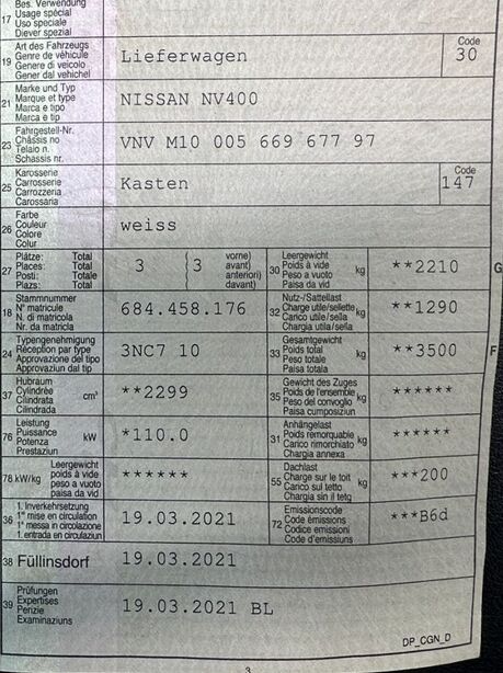 NISSAN NV400 F35.15 L2H2 FWD