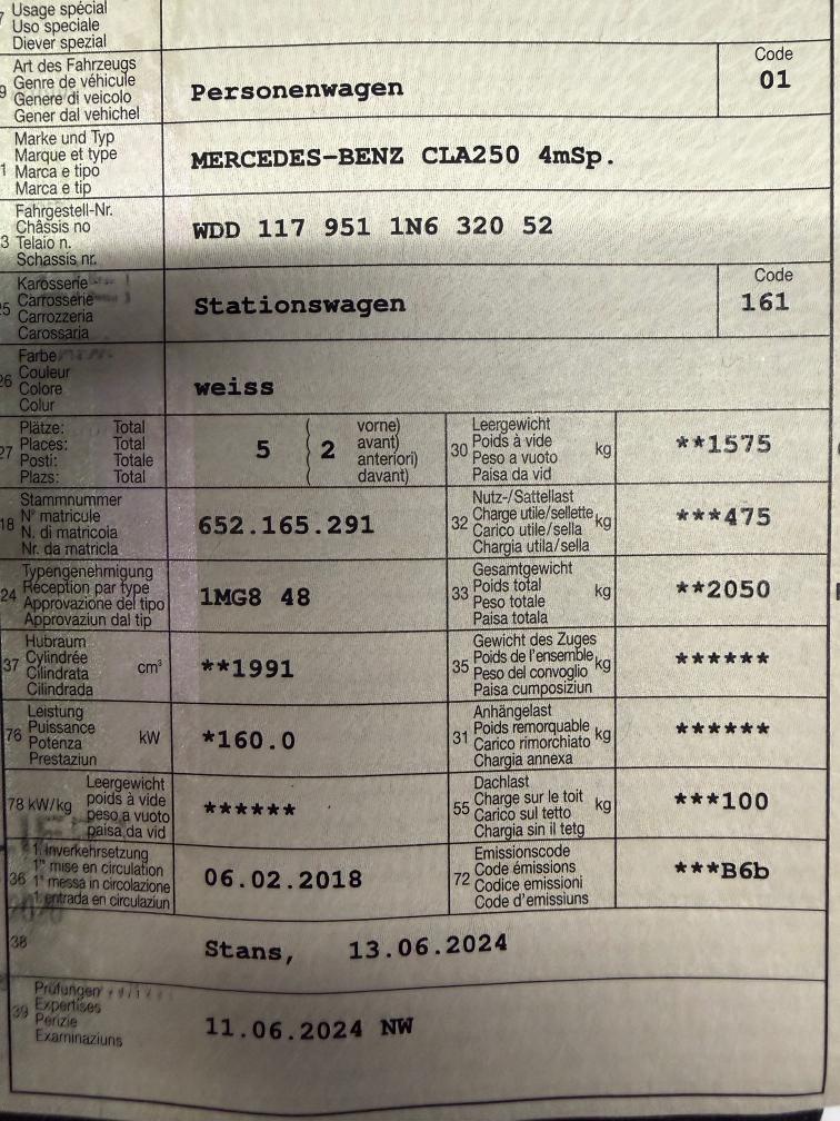 Ein schöner CLA 250 Sport 4x4 - es wurde kein Werkstatttest durchgeführt ! - Mängel gemäss Fotos ( Stosstange Aerodynamik Paket Teile gebrochen kein DTC ) - 8 fach bereift mit Pneus - Fahrzeug ist Tiefergelget ( Original Federn im Auto )