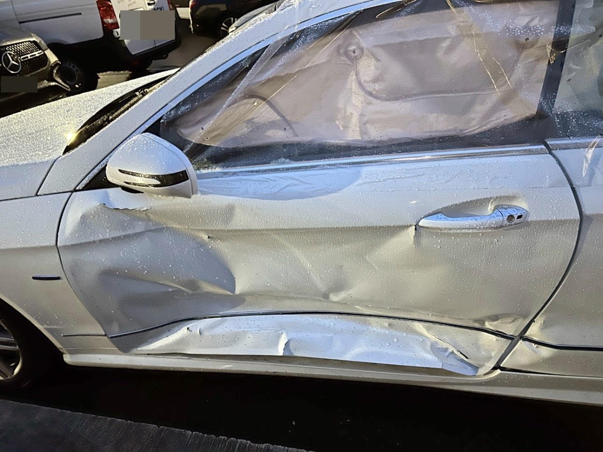 Airbag ausgelöst, B-Säule, Gurtstraffer ausgelöst, Kotflügel links, Schweller links, Seitenwand links, Stossstange hinten, Türe vorne links