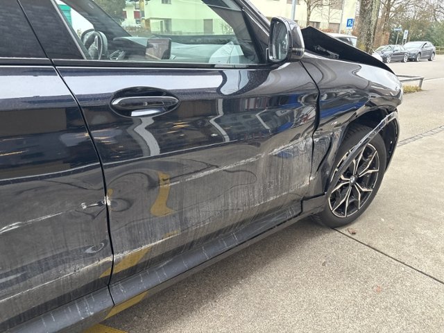 Rechte Seite beschädigt. Anstoss rechts im Bereich der A-Säule. Anstoss rechts im Bereich der B-Säule. Anstoss rechts im Bereich der C-Säule.
