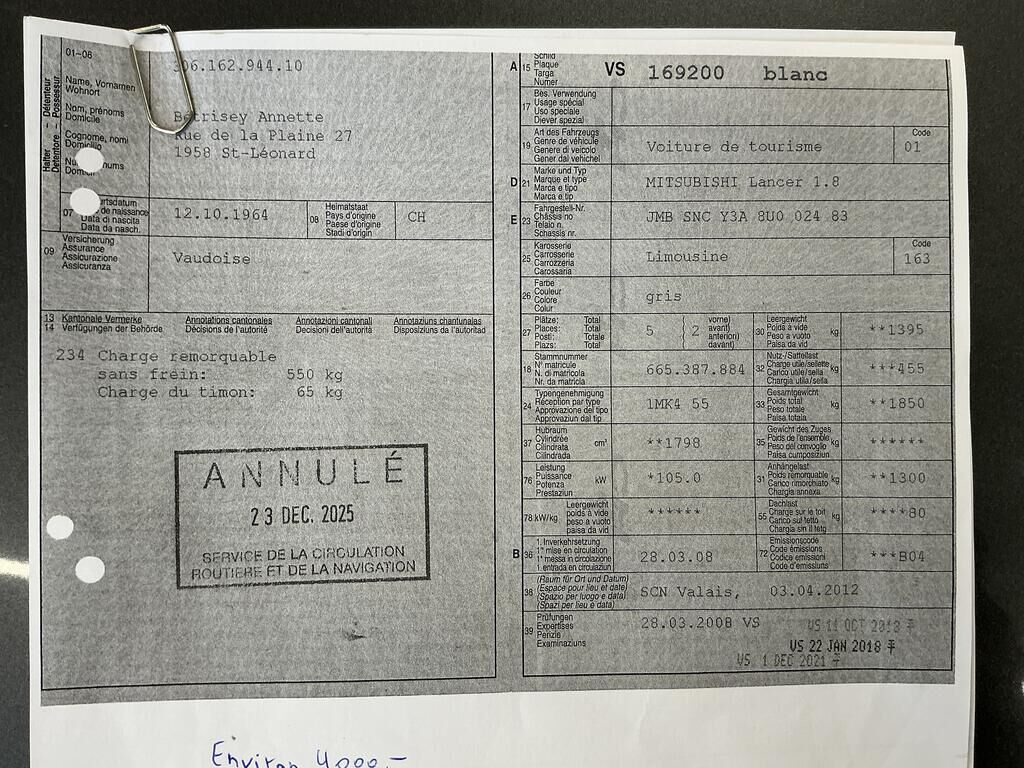 Porte avant et arrière droite , aile arrière droite, bas de caisse droit enfoncé. Cache bas de caisse droit griffé. Dommage préexistant: pare-chocs arrière griffé, peinture coffre arrière ternie, aile arrière gauche enfoncée. Motor Getriebe Vorderachse Hinterachse Airbags ausgelöst: 0 unbekannt ( Abfallcode 16.01.04ak )