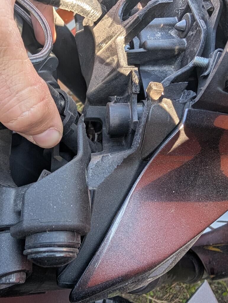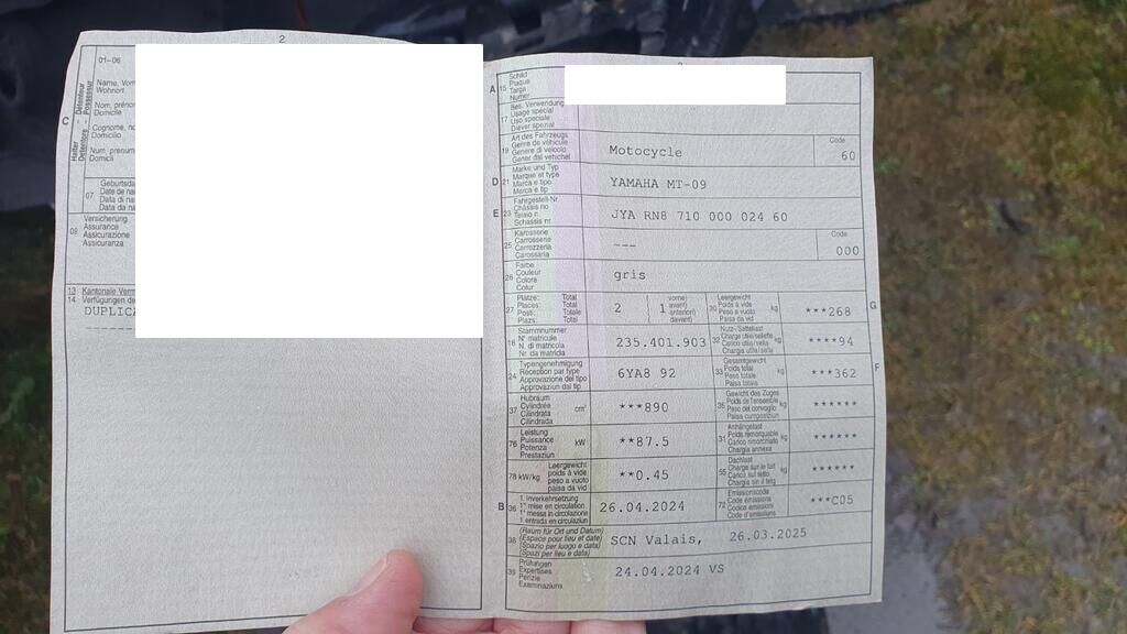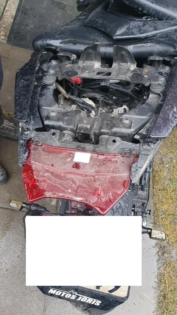 Flanc droit. gauche et dessus de la moto endommagée Motor Getriebe Vorderachse Hinterachse Airbags ausgelöst: 0 unbekannt ( Abfallcode 16.01.04ak )