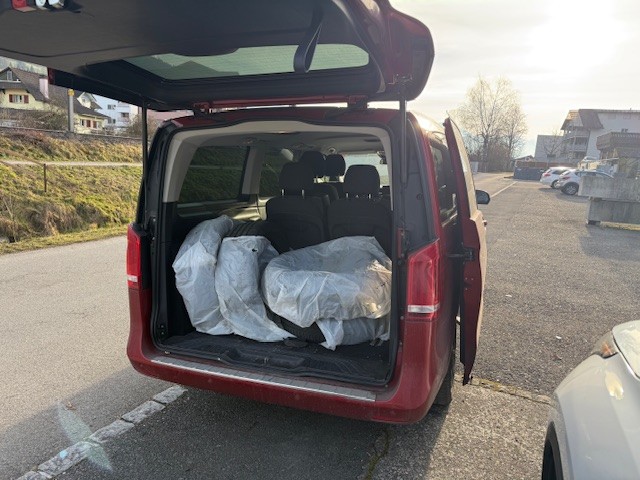 Airbag Fahrer und Beifahrerseite Elektronische Wegfahrsperre Elektrische Fensterheber vorne Aussenspiegel elektrisch verstellbar und heizbar Tempomat ASR Antriebsschlupfregelung ABS Antiblockiersystem ESP Elektronisches Stabilitätsprogramm Schiebetüre links Zentralverriegelung mit Fernbedienung Aussentemperaturanzeige Windowbag Scheibenwischer mit Regensensor Reifendruck-Kontrollsystem RDK Schiebetüre rechts Bremsassistent EBA Scheibenwaschanlage beheizt Seitenairbags vorne Radio/ CD Audio 20 Wärmedämmende Verglasung Klimaanlage geregelt/ Tempmatik Zusatzheizung Standheizung Dieselpartikelfilter Multifunktionslenkrad Leder 3-Speichen Isofix-Kindersitzbefestigung hinten Elektrosatz für Anhängevorrichtung DAB Radio (Digital Audio Sendung) Pack Spiegel Attention Assist Details siehe gültige Preisliste des Importeurs Keine Gewähr auf die Angaben der Serienausstattungen Pack Park mit Rückfahrkamera