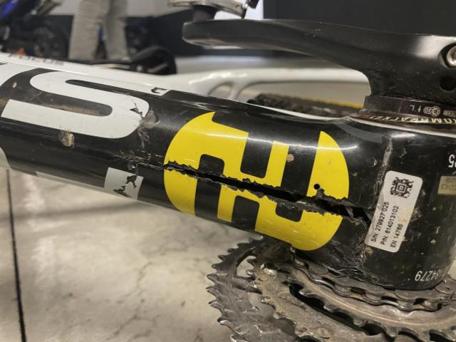 Vorderrad beschädigt. Gabel beschädigt. Lenker verbogen.
