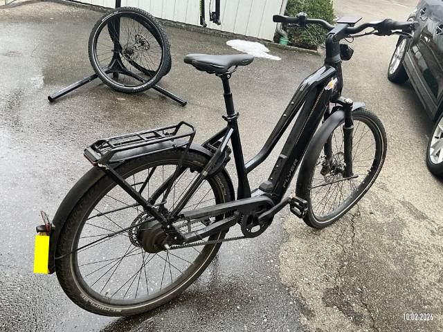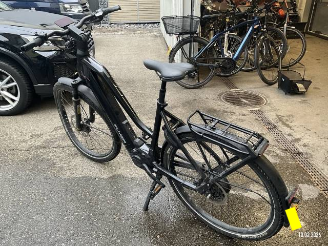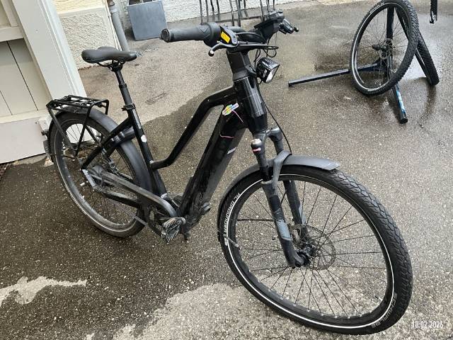 Display beschädigt, Gabel vorne verzogen, Rahmen verzogen, Felge vorne verzogen, Rückspiegel abgerissen, Schutzblech hinten verzogen, Gepäckträger zerkratzt - AUFZÄHLUNG NICHT ABSCHLIESSEND / Vorbestandene Schäden: Gebrauchsspuren