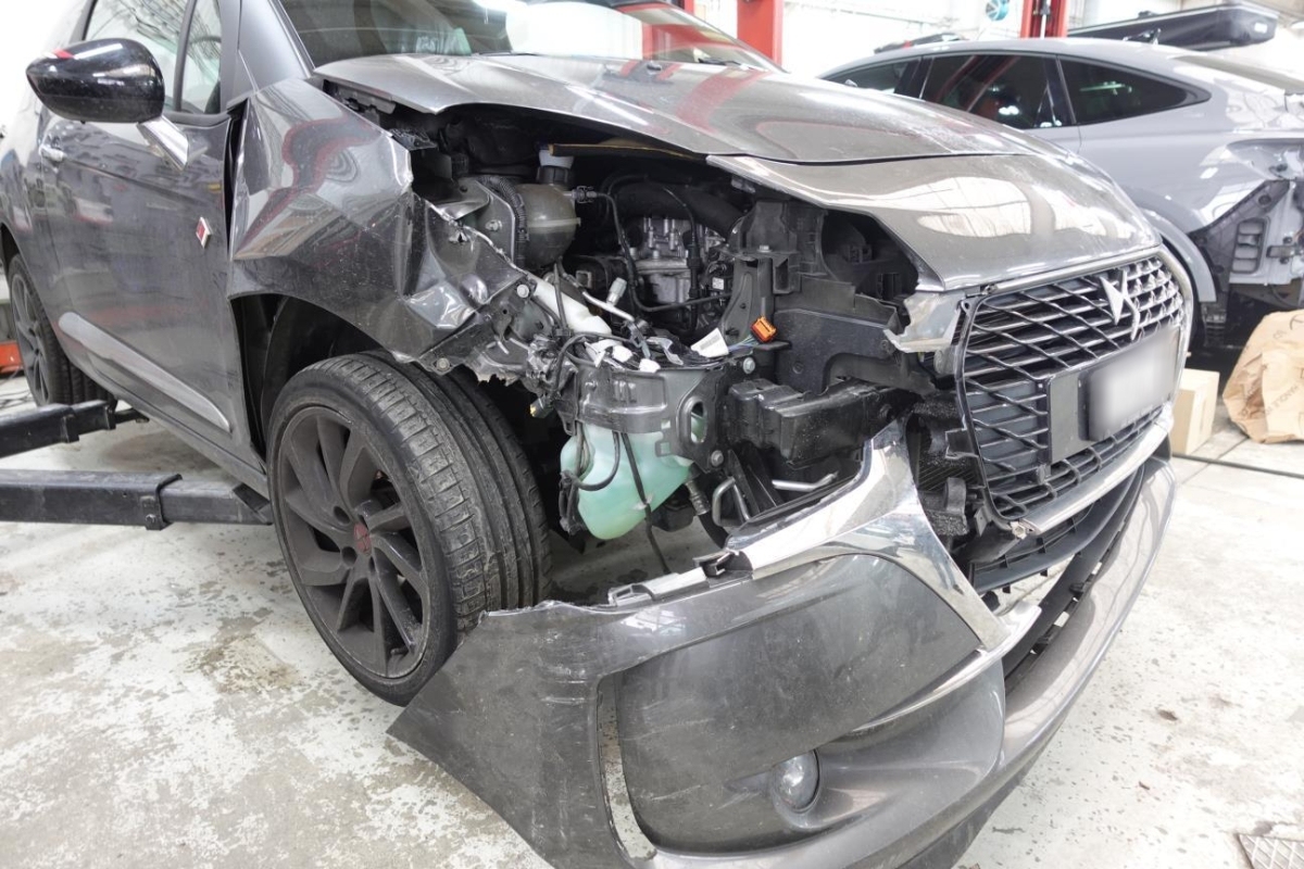 Le véhicule a subi un choc avant droit et arrière gauche. / Préexistants : Pare-chocs arrière rayé