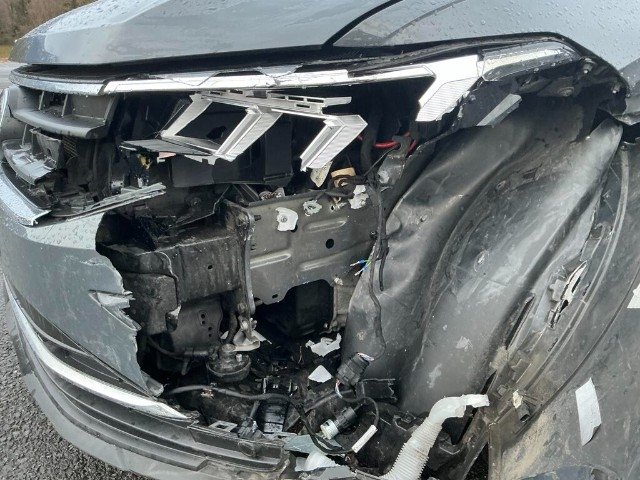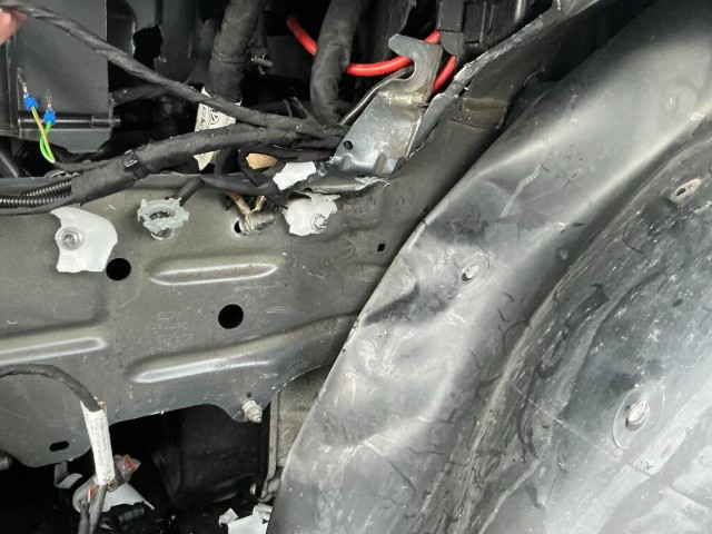 Stossstange, Gitter, Führung, Scheinwerfer, Kotflügel, Motorhaube, Kotflügel, Halterungen, Querträger, Längsträger, Radhausschale, Triebwerk, Federung, Lenkung, Gefahr am Getriebe, Tür vorne links, 5 beschädigte Airbags und Gurtstraffer.