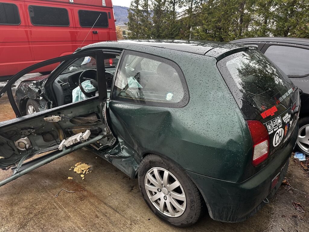 Anprall an der Fahrzeugseite links : Dabei wurde die Seitenwand, die Türe, der Kotflügel, die A-Säule, die B-Säule sowie die Vorderachse beschädigt. Das Fahrzeug ist eindeutig und offensichtlich ein Totalschaden. Die Reparaturkosten wurden nicht berechnet, da diese den Zeitwert eindeutig übersteigen Motor Getriebe Vorderachse Hinterachse Airbags ausgelöst: 3 unbekannt ( Abfallcode 16.01.04ak )