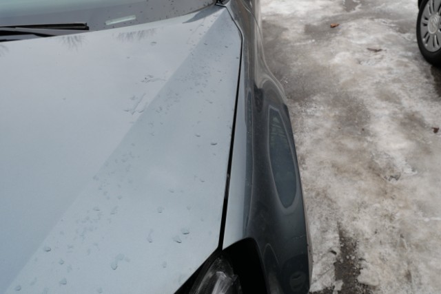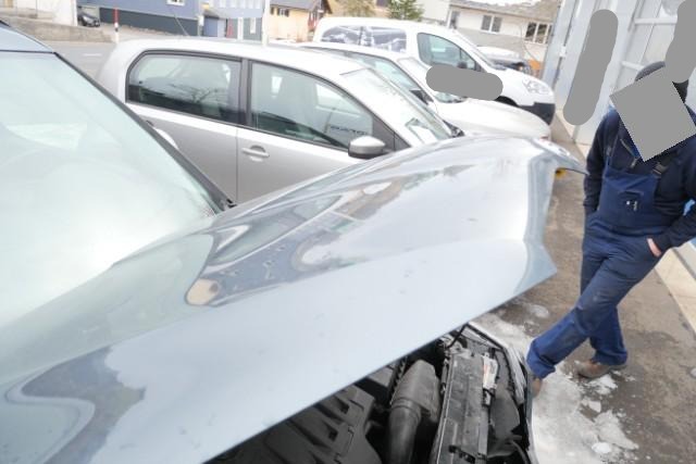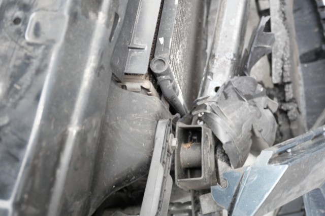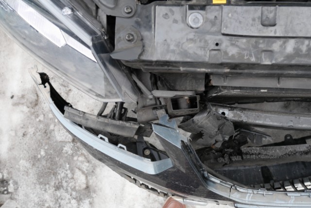 Front eingedrückt. Front rechts eingedrückt. Frontblech/Maskenblech eingedrückt. Fahrzeugvorbau verschoben.