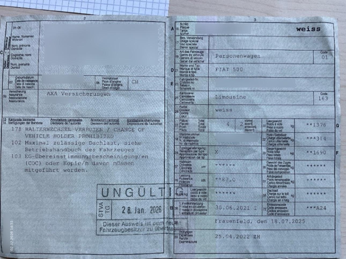 Das Fahrzeug hat rundum kleine Dellen, Beulen und Lackschäden, Diverse Gebrauchsspuren, Motor mit Risiko, konnte nicht geprüft werden, Motor und Getriebe mit Risiko, konnten nicht geprüft werden, Stosstange vorne