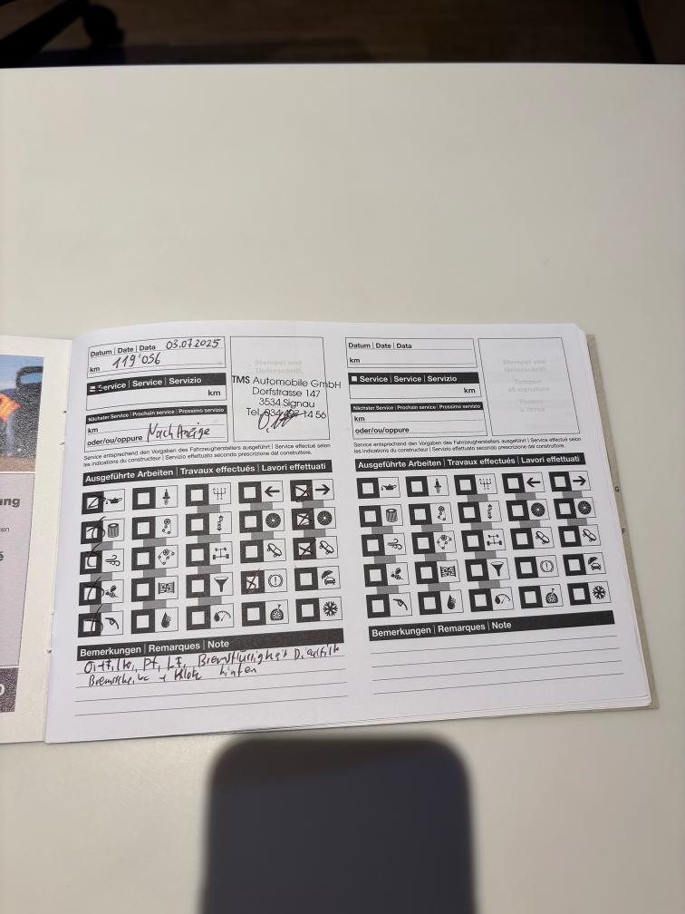 Folgende Mängel sind bekannt: diverse kleine Kratzer, Beulen und Gebrauchsspuren siehe Fotos, (Auto wird ohne Werkzeug welches auf Fotos zu sehen ist verkauft) 2 Schlüssel vorhanden MFK - letzter Termin 28.07.2023 letzter Service, 07.07.2025 bei 119'056km Mängelliste nicht abschliessend! Fahrzeug ab Platz: Für sichtbare und nicht sichtbare Mängel wird nicht gehaftet. Keine Garantie, Keine Minderung und/oder Wandelung möglich. Keine Nachverhandlungen. Kein Werkstatt-Test durchgeführt. Barbezahlung bei Abholung des Fahrzeuges. Fahrzeug wird direkt vom Kunden verkauft.