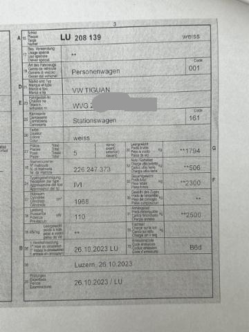 Textilfussmatten vorne + hinten Höhenverstellbare Vordersitze Airbag Fahrer und Beifahrerseite Kindersitz-Vorbereitung Isofix Innenspiegel automatisch abblendbar Regensensor Lenksäule mit Höhen- und Längseinstellung Aussenspiegel elektrisch anklappbar Diebstahlwarnanlage m. Innenenraum-Überwachung Schliess- und Startsystem Keyless Access Zentralverriegelung mit Funkfernbedienung Elektrische Fensterheber vorne + hinten Dachreling eloxiert Komfortsitze vorne Lendenwirbelstützen Vordersitze Deaktivierung Beifahrerairbag Mittelarmlehne vorne mit Ablagebox Seiten- und Heckscheibe hinten abgedunkelt ESP/ EDS/ ASR/ ABS/ BA Auto-Hold-Funktion Reifenkontrollanzeige RKA Rückfahrkamera Heckklappe mit el. Öffnung und Schliessung Rücksitzbank und -lehne asymmetrisch geteilt umklappbar Automatische Distanzregelung ACC/ Front Assist Dieselpartikelfilter Elektronische Parkbremse ParkPilot vorne + hinten Knieairbag Fahrer Tire mobility system LED Heckleuchten Spurhalteassistent Lane Assist Kopfairbag vorne und hinten inkl. Seitenairbag vorne Multifunktions-Lederlenkrad 3-Speichen Elektronische Differentialsperre XDS Stop + Start System mit Brems-Energie-Rückgewinnung Fernlichtregulierung Light Assist Klimaanlage Climatronic 3-Zonen Müdigkeitserkennung Keine Gewähr auf die Angaben der Serienausstattungen Parklenkassistent Digitaler Radioempfang DAB+ Fahrprofilauswahl Easy Open & Close der Heckklappe Security & Service/ Notruf IQ Light Matrix LED-Scheinwerfer We Connect Wireless App Connect Digital Cockpit Pro Radio Ready 2 Discover Streaming & Internet Leichtmetallräder 18" Frankfurt USB-C Anschluss hinten