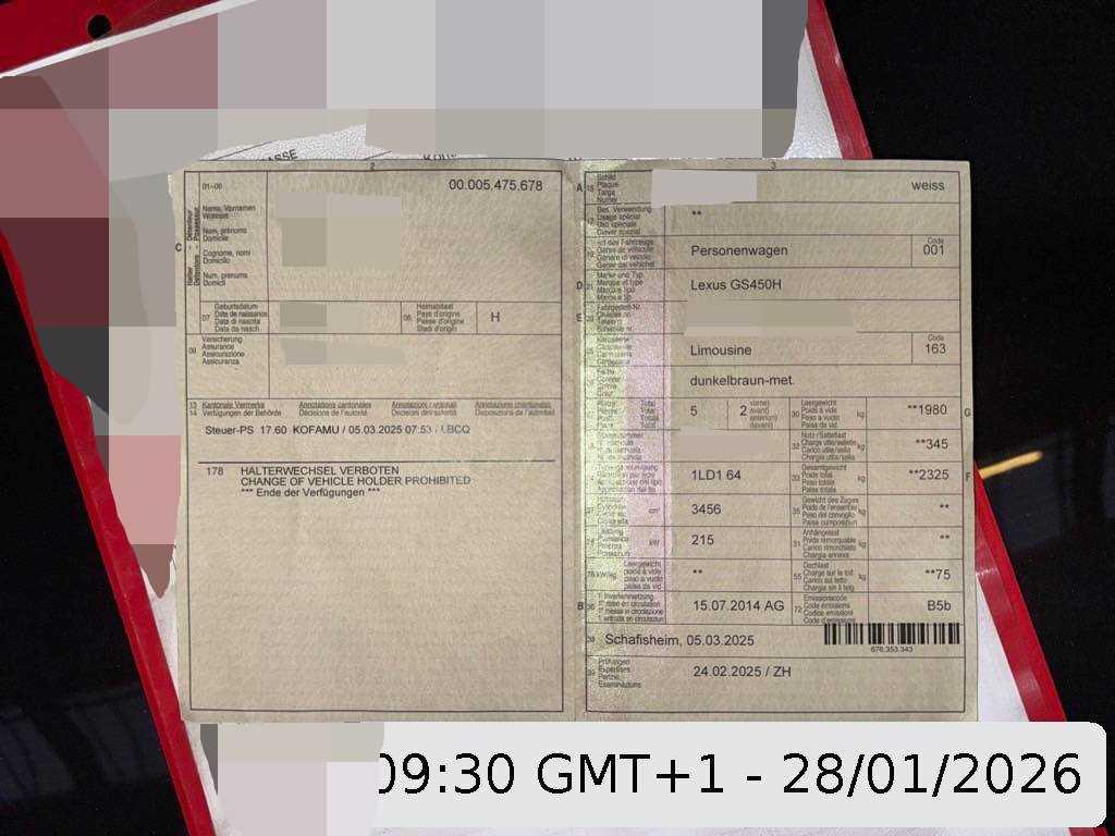 Elektrische Heckklappe, Rückfahrkamera mit Monitor, Totwinkel-Assistent, Regensensor, Aktivkohlefilter (Geruchsfilter), Komfortblinker, Assist: Tempomat, 12-Volt-Steckdose hinten, 12-Volt-Steckdose vorne, Lenkradheizung, Applikationen schwarz glänzend, Head-Up Display, Soft Close Automatik für Heckklappe, Pre-Crash-Sicherheitsystem mit adaptivem Tempomat, Antiblockiersystem (ABS), Wegfahrsperre elektronisch, Airbag: Window-Kopfairbags, Nebelscheinwerfer, Stabilitäts- und Traktionskontrolle (VSC und TRC), Sitze: Fahrersitz mit Memoryfunktion, Aussentemperaturanzeige, Smart Key, Ohne Heckspoiler, Vordersitze heizbar und belüftet, Elektrisch einstellbare Lendenwirbelstütze für Vordersitze, Diebstahlwarnanlage, Innen- und Aussenspiegel automatisch abblendend, Räder: Reifenreparatur-Set (Tire Fit), Abblendlichtausschaltverzögerung 'Follow me home', Digitaler Radioempfang (DAB), Lexus Card-Schlüssel, Audiosystem Mark Levinson, LED Blinker im Aussenspiegel, Mittelarmlehne hinten, Abblendautomatik, Holzapplikationen, USB+AUX-Anschluss, Gurtstraffer vorne und hinten, Kopfstützen hinten, LED Scheinwerfer, Sonnenschutzrollo für Heckscheibe elektrisch, Einstiegsleisten in Aluminium, Getriebe: Stufenloser Automat, Semi-Anilin Ledersitze, ISOFIX Kindersitzvorrichtung, Multifunktionsanzeige, Licht: Nebelschlussleuchte, Bluetooth Freisprechanlage, HDD-Multimedia Navigationssystem mit Touchscreen Farbbildschirm und Rückfahrkamera, Highend Surround, UV-absorbierende Verglasung, Hill-Start Assist (HSA), Innenleuchten LED, Analog-Uhr, Elektrische Fensterheber vorne + hinten, Gurtkontrolle, Adaptives Kurvenlicht, Sitze: Rücksitze heizbar, Vordersitze elektrisch verstellbar mit Oberschenkelauflage ausziehbar, Integriertes Fahrdynamikmanagement VDIM, Automatische Umluftkontrolle, 3-Zonen-Klimatisierungsautomatik, Airbag: Airbag Fahrer und Beifahrer, Airbag: Knie-Airbag für Fahrer und Beifahrer, Bremsassistent (BAS), Sitze mit Schleudertrauma-Schutzsystem, Smart Entry-/Start-System, Scheibenwischer vorne mit Intervall, Lenkrad-Wippschaltung (Paddles), Lenkrad: Multifunktionslenkrad, Sonnenschutzrollos für Türscheiben hinten, Park Distance Control vorne und hinten, Räder: Reifendruck-Kontrollanzeige, Premium-Audiosystem, Leuchtweitenregulierung automatisch, Beleuchtetes Einstiegssystem mit Umfeldbeleuchtung, Licht: Drittes Bremslicht, Katalysator geregelt, Licht: LED-Tagfahrlicht, Ausstiegsleuchten in den Türen, Aussenspiegel rechts und links beheizt, elektrisch verstell- / und einklappbar, 4 Leichtmetallfelgen 18J mit Pneu, Bordcomputer, Klimaanlage im Fond, Lenkrad: Lenkrad elektrisch längs- und höhenverstellbar, Seitenairbags vorne und hinten, Airbag: Beifahrer deaktivierbar, Licht: LED Nebelscheinwerfer, Adaptives, variables Fahrwerk AVS mit Sport-/Komfort-Modus, Armlehne vorne mit Ablagefach, Licht: LED Heckleuchten