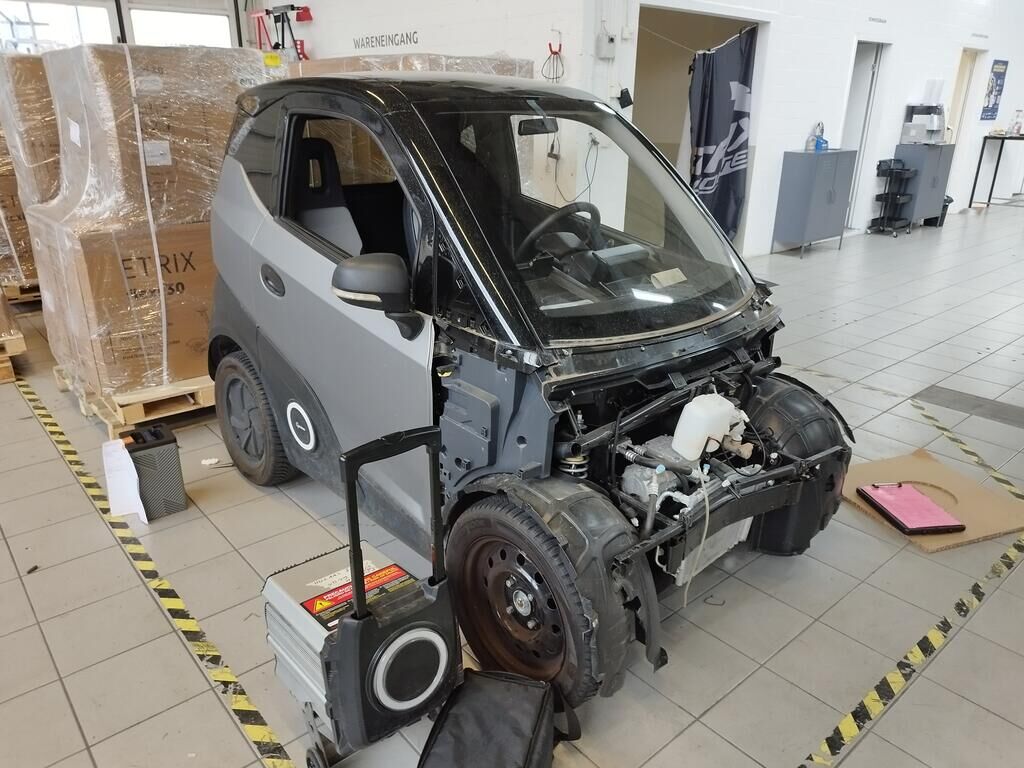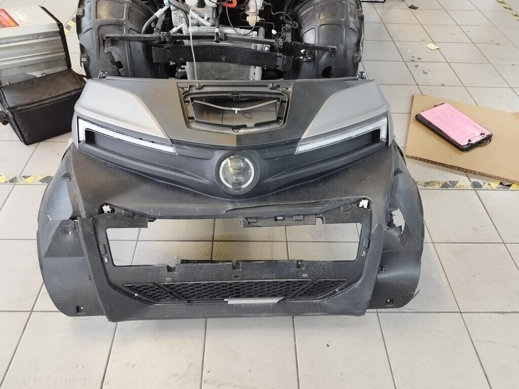 Die Frontverkleidung vorne ist gerissen, beide Scheinwerfer sind gerissen, beide Radhausschalen sind gerissen, der Frontträger ist deformiert, der Klimakühler ist deformiert, der Rahmen ist deformiert. Weitere Details zum Schadenfall gehen aus den beiliegenden Fotos hervor. Motor Getriebe Vorderachse Hinterachse Airbags ausgelöst: 0 unbekannt ( Abfallcode 16.01.04ak )