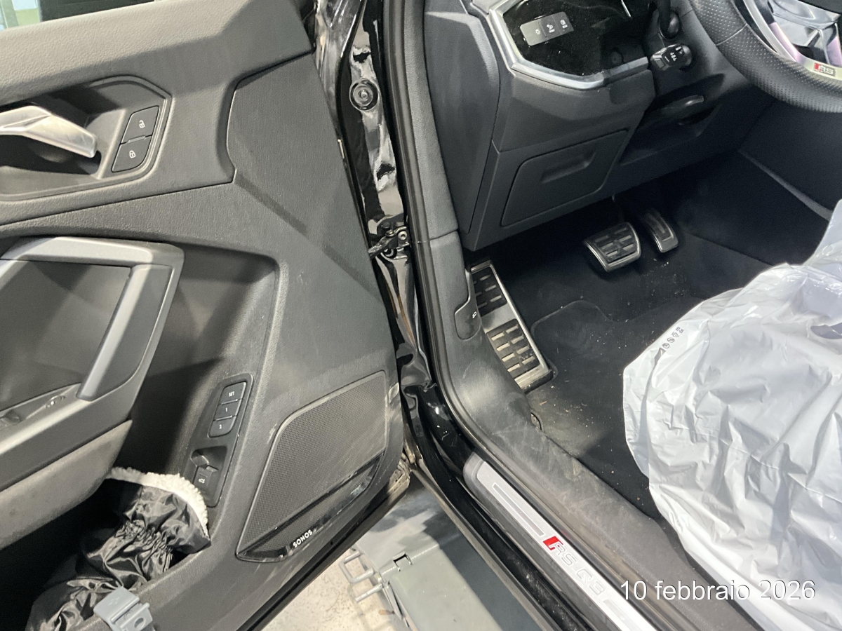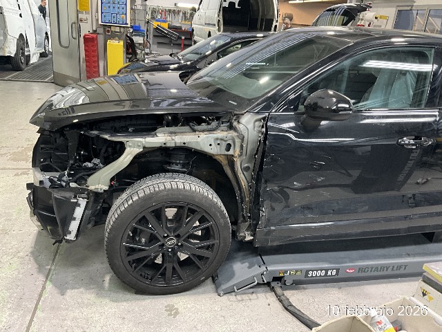 Beschreibung der Schäden: urto fianco sinistro, deformazione del montate A, lamierati esterni come porta, pf, piegatura sospensione sx, rottura PC