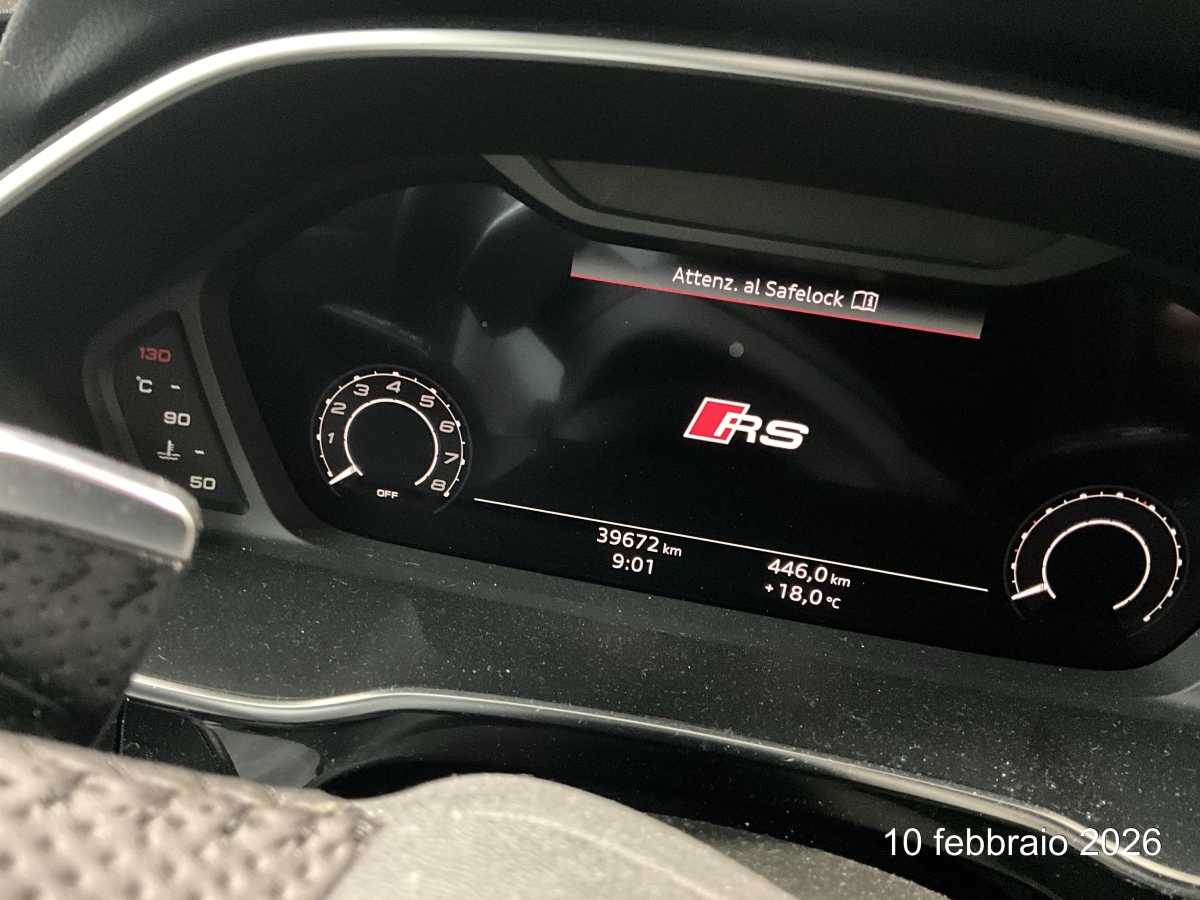 Drehzahlmesser, Räder: Reifenreparatur-Set (Tire Fit), Räder: Reifendruck-Kontrollanzeige, Dekor: Aluminiumoptik im Interieur, Airbag: Seitenairbags vorne, Heckscheibenheizung, Scheinwerfer-Waschanlage, Räder: Leichtmetallräder 20 Zoll - 10-Speichen-Stern - Grösse 8,5 J × 20 mit Reifen 255/40 R 20, Audi connect Notruf, Gepäckraumklappe elektrisch öffnend und schliessend, Polster: Interieurelemente in Alcantara schwarz, Innenspiegel abblendbar, Elektronische Parkbremse, USB-Anschluss, Servolenkung, Licht: Nebelschlussleuchte, Heckspoiler in Wagenfarbe, Kindersitzbefestigung ISOFIX für den Beifahrersitz, Dekor: Dekoreinlagen Aluminium Race anthrazit, Katalysator geregelt, Veloursfussmatten vorne und hinten, Garantie: 2 Jahre ohne Kilometerbegrenzung (ab 1. Inv.), Stopp-/Start-System, Spurverlassenswarnung und Spurwechselwarnung, Airbag: Window-Kopfairbags, Wegfahrsperre elektronisch, Audi pre sense front, Pedale und Fuss-Stütze in Aluminium, Elektrische Kindersicherung, Aussenspiegel rechts und links beheizt, elektrisch verstell- / und einklappbar, Audi drive select, Fahrwerk: RS-Sportfahrwerk, Progressivlenkung, Dekor: Akzentfläche in der Armaturentafel in Glasoptik schwarz, Aussenspiegel in schwarz, Mittelarmlehne vorne, Dekor: Interieurelemente in Microfaser dinamica schwarz, RS-Bremsanlage, Assist: Berganfahrassistent, Lackierung: Uni-Lackierung, Bordcomputer, Elektronisches Stabilitäts-Programm (ESP), Sitze: 4-Wege-Lendenwirbelstütze für die Vordersitze, Gurtkontrolle, Getriebe: 7-Gang- Automat S tronic, Media: MMI Radio plus, Licht: Drittes Bremslicht, Sitze: Vordersitze manuell verstellbar, Licht: Licht- und Regensensor, Heckscheibe, hintere Tür- und Seitenscheiben in Klarglas, Ladekantenschutz in Edelstahl, Kopfstützen hinten, Airbag: Airbag Beifahrer deaktivierbar, Licht: LED Scheinwerfer, Klima: Klimaanlage, Licht: LED-Heckleuchten mit dynamischem Blinklicht, Dachhimmel schwarz, Nichtraucherausführung, Frontscheibe in Akustikverglasung, Zentralverriegelung mit Fernbedienung, Assist: Müdigkeitserkennung, Paket: Ambiente Lichtpaket, Audi virtual cockpit, Sitze: Sportsitze vorne, Einstiegsleisten mit Aluminiumeinlage und beleuchtetem RS Q3-Schriftzug vorn, Heckscheiben-Wisch-/Waschanlage, Lenkrad: RS-Sportkontur-Lederlenkrad im 3-Speichen-Design - mit Multifunktion plus und Schaltwippen, unten abgeflacht, Kindersitzbefestigung ISOFIX und Top Tether für die Rücksitzbank, ABS, EBD elektronische Bremskraftverteilung, Media: Bluetooth-Schnittstelle, Kühlergrilleinfassungen, Verbandmaterial und Warndreieck, Paket: Optikpaket schwarz glänzend (Dachreling in schwarz matt/ Optikpaket schwarz / Frontspoiler), Airbag: Airbag Fahrer und Beifahrer, 3-Punkt-Sicherheitsgurte auf allen Plätzen, Media: Audi Sound System, Sitze: Rücksitzbank plus mit Mittelarmlehne und Cupholder, Bordwerkzeug, Media: Digitaler Radioempfang (DAB), Kopfstützen vorne höhenverstellbar, Geschwindigkeitsbegrenzer