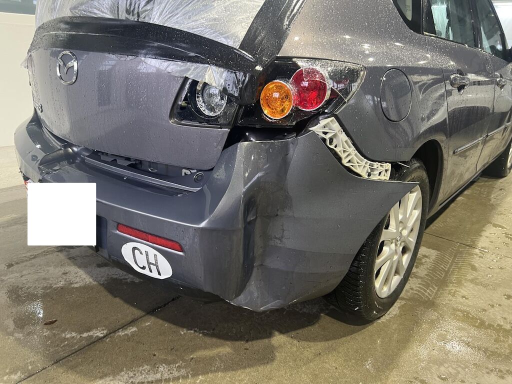 Anprall Heck rechts Dabei wurde die Heckklappe, das Heckblech, die Stossstange, die Heckleuchte und diverse Anbauteile beschädigt. Motor Getriebe Vorderachse Hinterachse Airbags ausgelöst: 0 unbekannt ( Abfallcode 16.01.04ak )
