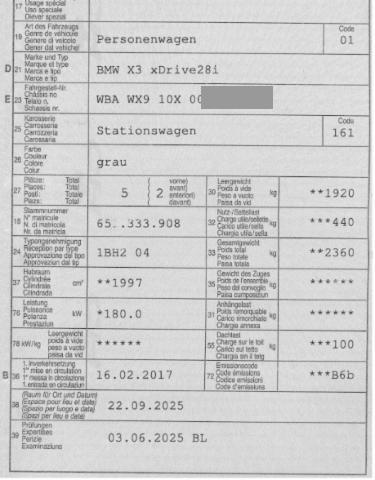 Fahrzeugdokumente vorhanden.