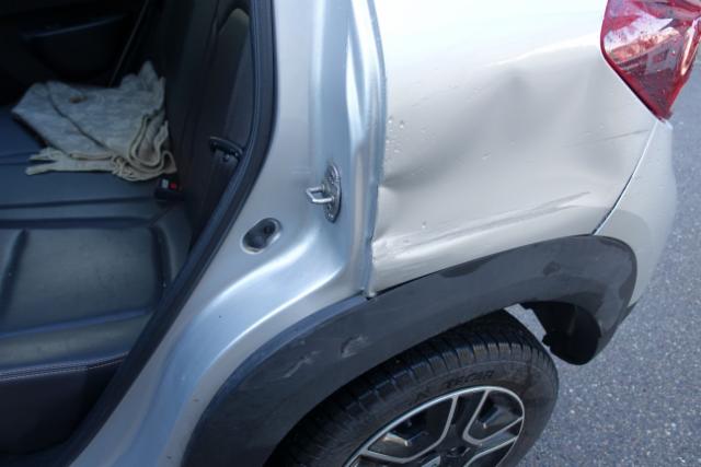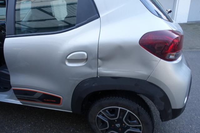 Linke Seite beschädigt. Tür hinten links ist eingedrückt.