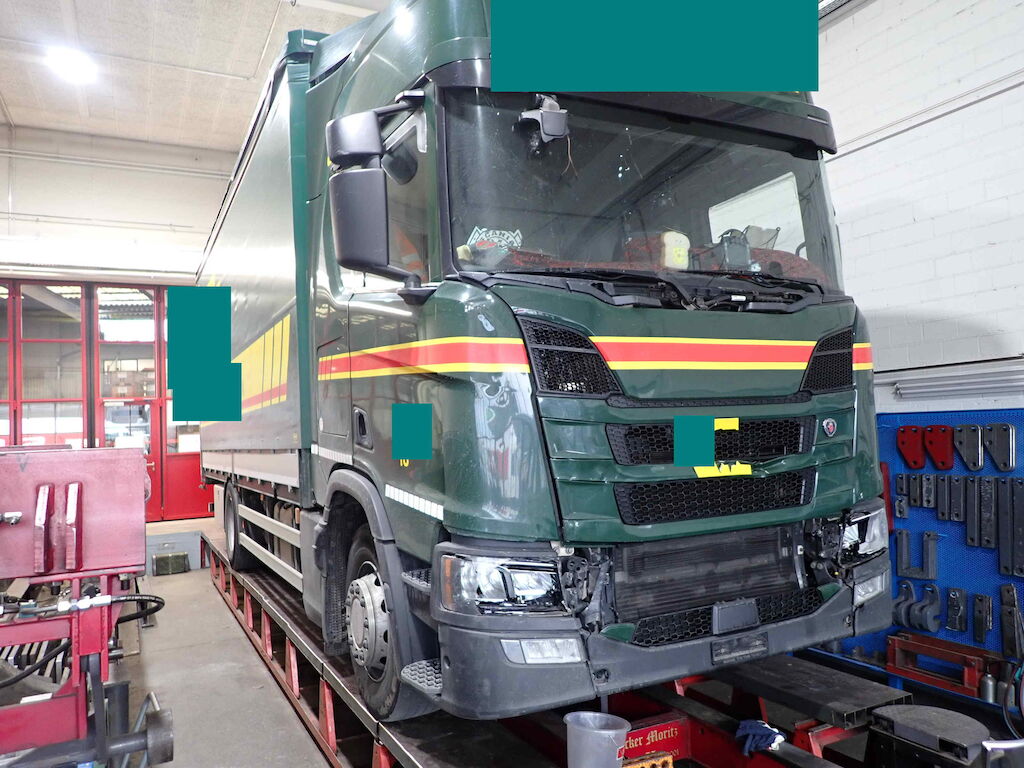 massiver Frontschaden: ganze Front, Frontblech, Scheinwerfer, Radar, Kühlerpacket, div. Sensoren und Anbauteile, Frontscheibe, Kabine verschoben, Rahmen verzogen, Kabinenblech hinten Motor Getriebe Vorderachse Hinterachse Airbags ausgelöst: 0 unbekannt ( Abfallcode 16.01.04ak )