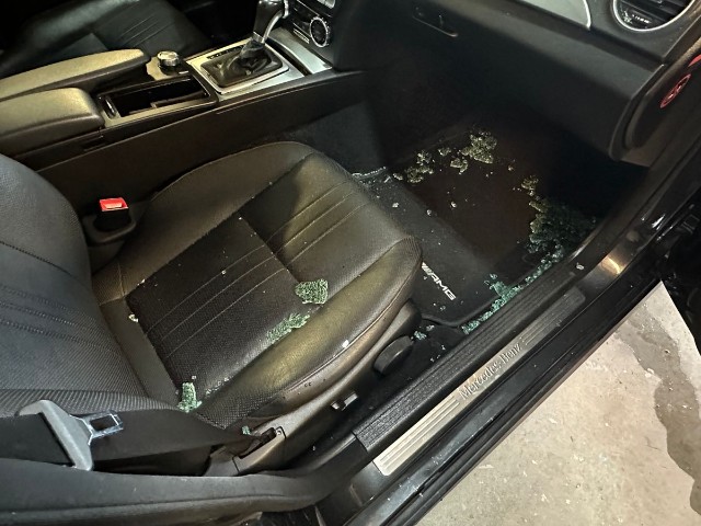 Türscheibe vorne rechts ist zerbrochen / beschädigt.