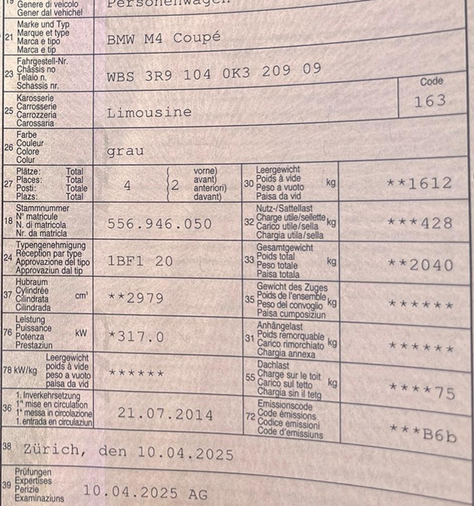 Fahrzeug in einem Top Zustand! Folgende dinge wurden am M4 gemacht und fachgerecht Abgenommen: M-Performance Frontlippe M-Performance Difussor M-Performance Komplette Auspuffanlage M-Performance Carbon Auspuffblenden M-Performance Heckspoiler M-Performance Felgen M-Performance Lenkrad M-Performance Armlehne M-Performance Teppich M-Performance Carbon Schaltknüppel (DKG) Carbon Schaltwippen Heckleuchte CS style (Originale vorhanden) KW Gewindefahrwerk DDC Kurbelwellen Sicherung von Aulitzky