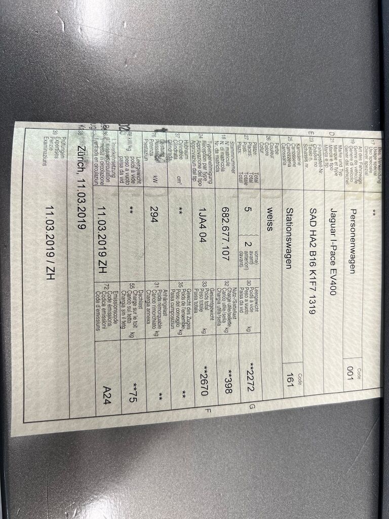 Siehe Fotos: Seitenwand rechts und links Kratzer, kleine Dellen Türe. Service fällig 06.2026, 4 Neue Reifen braucht das FZ, HV-Batterie wurde über die Garantie Gelöst, Batterie IO. Stossstangen hinten und Vorne. Motor Getriebe Vorderachse Hinterachse Airbags ausgelöst: 0 unbekannt ( Abfallcode 16.01.04ak )