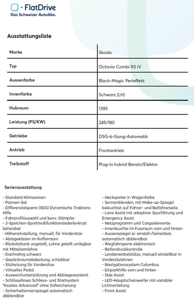 SKODA OCTAVIA RS iV 245PS PHEV/Benzin - Skoda Garantie 5J. / 100'000 Km ab 1. Inv.