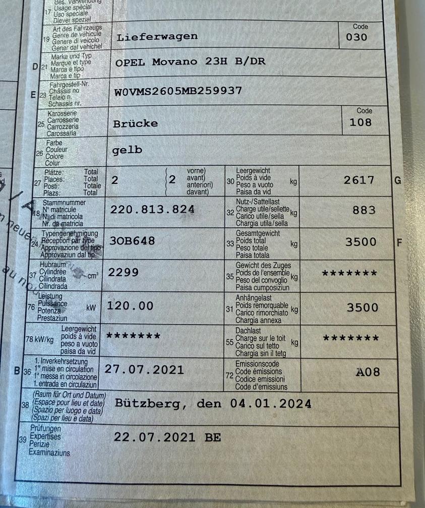 OPEL Movano 23H B/DR