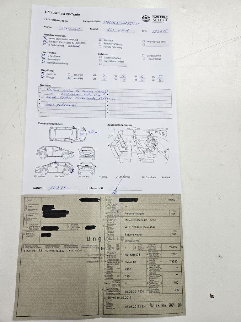Keine technische Prüfung (Werkstatttest) vorgenommen Diverse Schäden an Karosserie/Lack. 8-fach bereift. Fahrzeug ab Platz, ohne Garantie und Aufbereitung. Zustand siehe Protokoll Motor Getriebe Vorderachse Hinterachse Airbags ausgelöst: 0 unbekannt ( Abfallcode 16.01.04ak )
