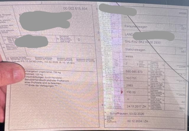 Der Kilometerstand wurde abgelesen. Gebrauchsspuren und kleinere Vorschäden sind möglich. Am Fahrzeug sind Winterräder montiert, keine weitere Bereifung vorhanden. Vor Ort waren: 1 Schlüssel, Ausweis, Borddokumente. Motor und Getriebe wurde nicht geprüft Weitere nicht aufgeführte oder verdeckte Schäden sind möglich!