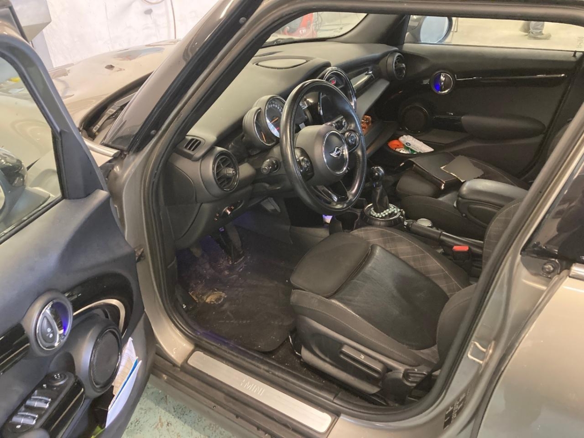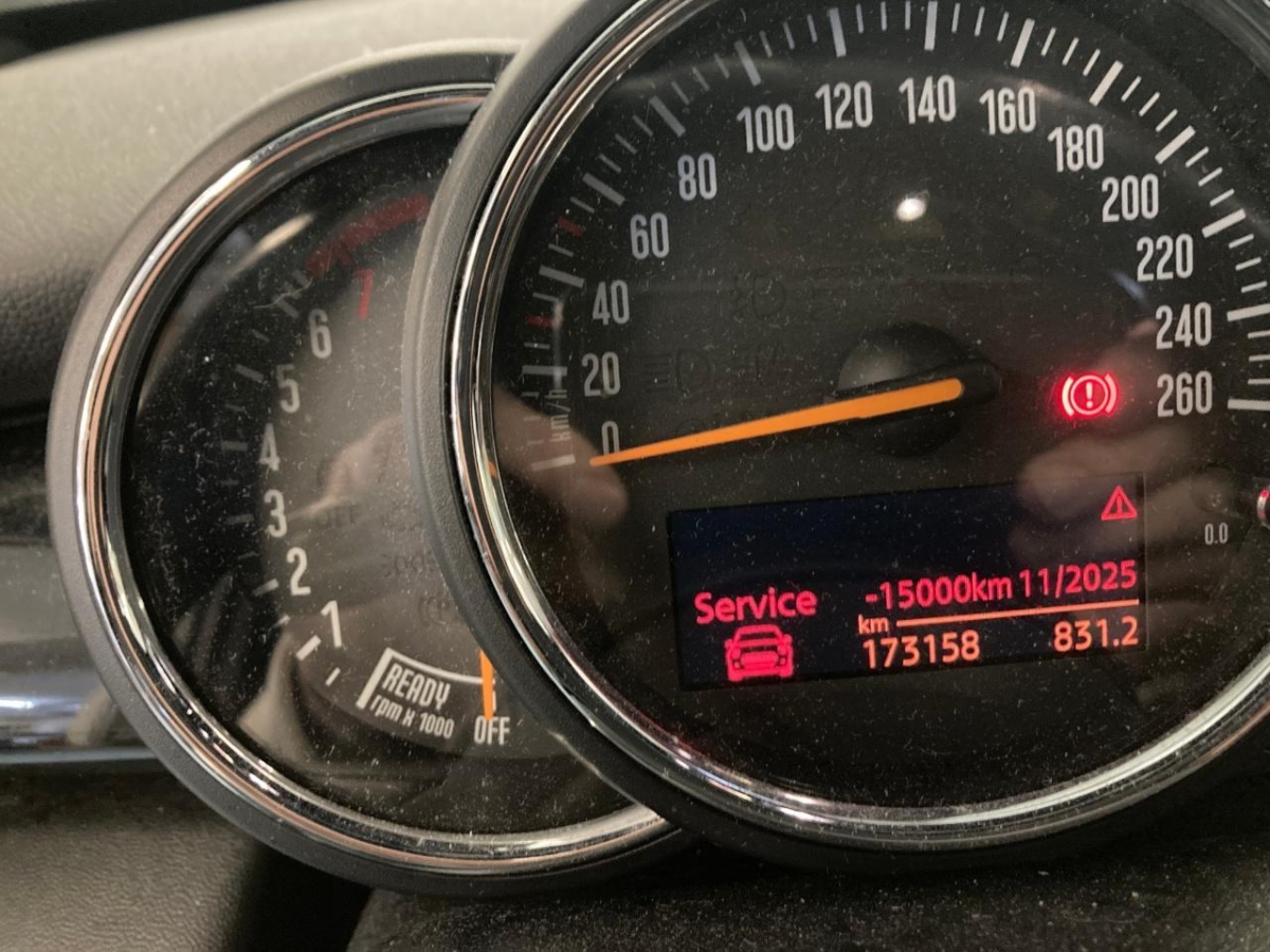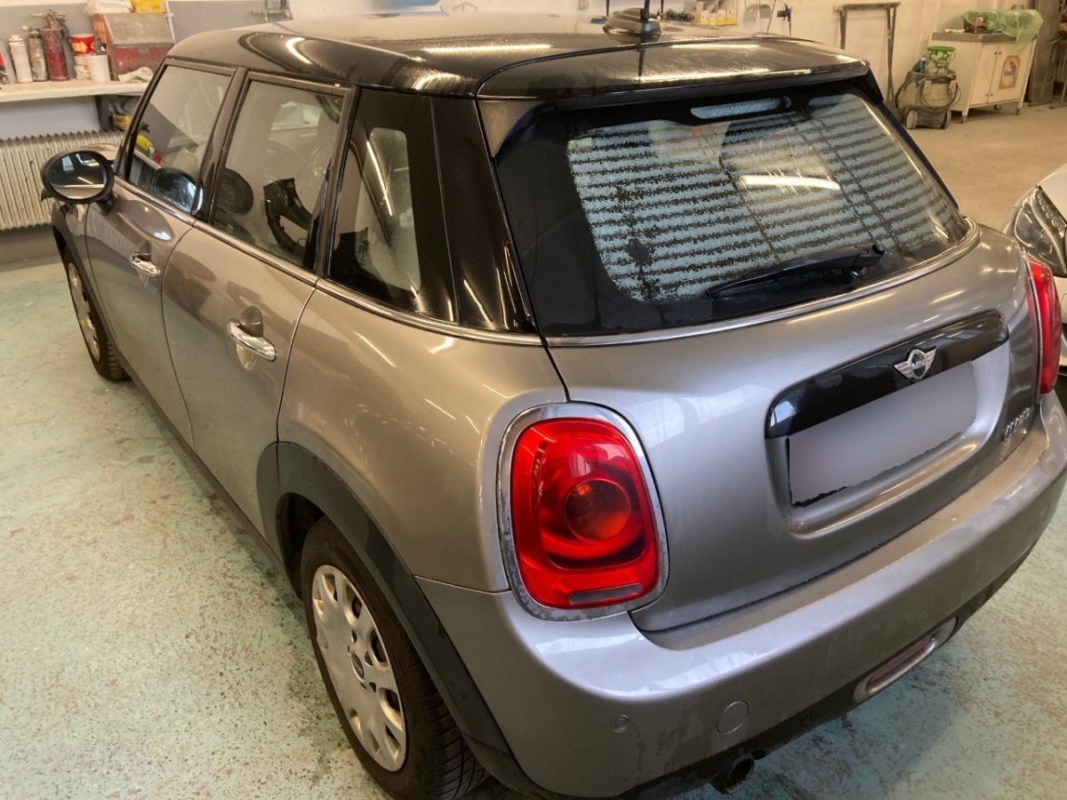 Lenkrad: Lenkrad längs- und höhenverstellbar, Drehzahlmesser, Kopfstützen hinten, Klimaanlage, Licht: Nebelschlussleuchte, Ablagefach, Dekor: Interieuroberflächen Hazy Grey, Traffic Information, Türgriffe aussen verchromt, Einstiegsschienen, Leuchtweitenregulierung elektrisch, Ablagenpaket, Dachspoiler, Laderaumbeleuchtung, Crash-Sensor, Dachhimmel in grau, Elektronischer Bremskraftverteilung EBD, Türgriffe innen verchromt, Intelligenter Notruf, Licht: Abblendlichtausschaltverzögerung 'Follow me home', MINI Mobility System, Heckscheiben-Wisch-/Waschanlage mit, 3-Punkt-Sicherheitsgurte auf allen Plätzen, Polster: Stoff-Ausstattung, Veloursfussmatten vorne und hinten, Cupholder, Heckscheibenheizung, Cornering Brake Control (CBC), Wegfahrsperre elektronisch, Airbag Beifahrer deaktivierbar, Licht: Halogenscheinwerfer, Start/Stop-Funktion, 12-Volt-Steckdose vorne, Dekor: Colour Line Carbon Black, ISOFIX Kindersitzvorrichtung, Gurtstraffer vorne, Sitze: Rücksitzlehne geteilt abklappbar, Dynamische Stabilitätskontrolle (DSC), Lackierung: Uni-Lackierung, Bordcomputer, Elektrische Fensterheber vorne, Befestigungsösen im Laderaum, Servotronic, Reifendruck-Kontrollanzeige, Verbandskasten, Abschliessbare Radschrauben, Nichtraucherausführung, Start-/Stop-Knopf, Media: USB-Anschluss, Airbag: Airbag Fahrer und Beifahrer, Antiblockiersystem (ABS), Katalysator geregelt, Licht: Tagfahrlicht, Leichtmetallräder Heli Spoke 15J, silber, Getriebe: 6-Gang-Getriebe, Aussenspiegel in Wagenfarbe, Drittes Bremslicht, Zentralverriegelung mit Fernbedienung, Aux-In Anschluss, Innenraumbeleuchtung, Dynamische Bremsleuchten, Sitze: Vordersitze höhenverstellbar