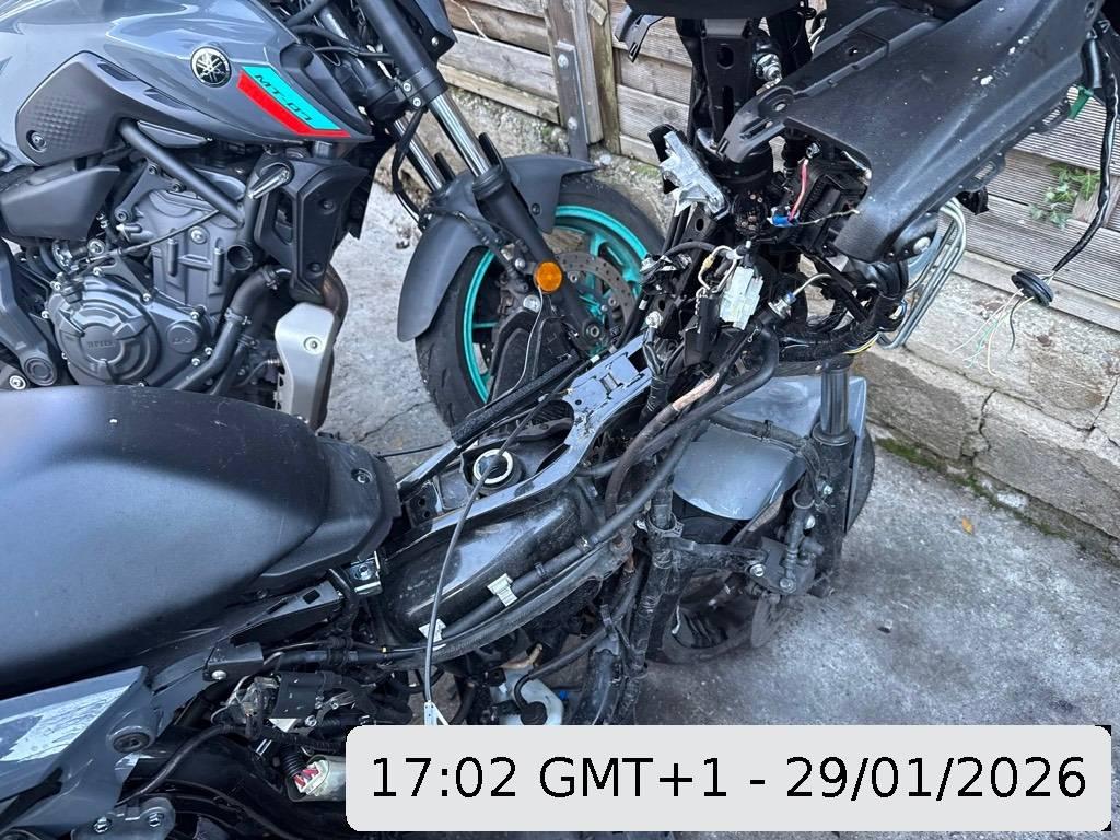 Armaturen, Auspufftopf, Aussenspiegel links, Aussenspiegel rechts, Diverse Anbauteile, Front, Fussraster links, Fussraster rechts, Gabelholm, Griff links, Griff rechts, Heck, Heckverkleidung, Kabelstrang, Kupplungsgehäuse, Kühler, Lenker, Lenkschloss, Motorgehäuse, Rad vorne, Rücklicht, Scheinwerfer, Schutzblech hinten, Schutzblech vorne, Seite links, Seite rechts, Verschalungen hinten, Verschalungen links, Verschalungen rechts, Verschalungen vorne, Zündschloss